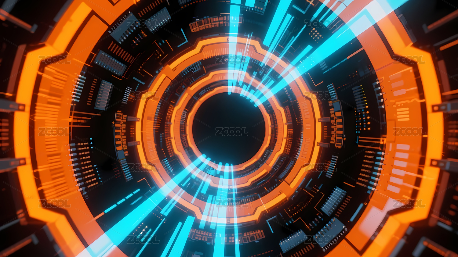 橙蓝圆形科技界面黑孔中心
