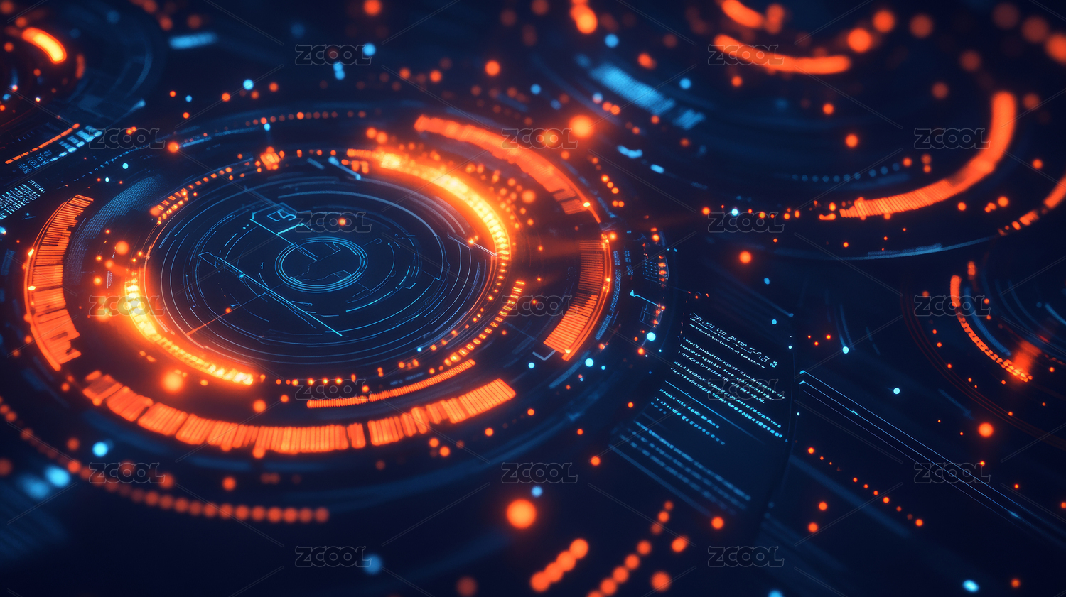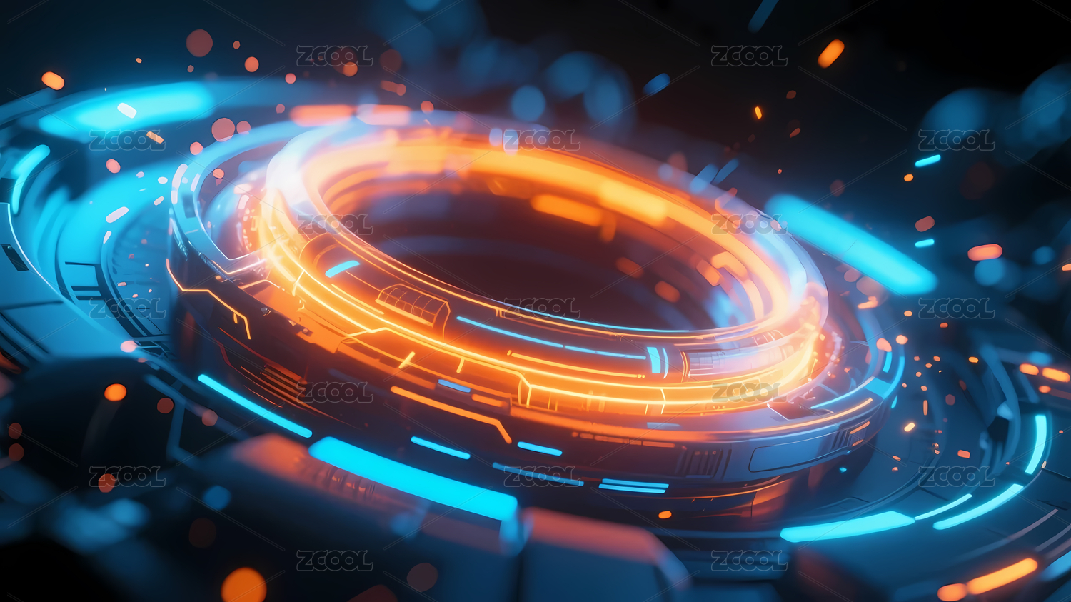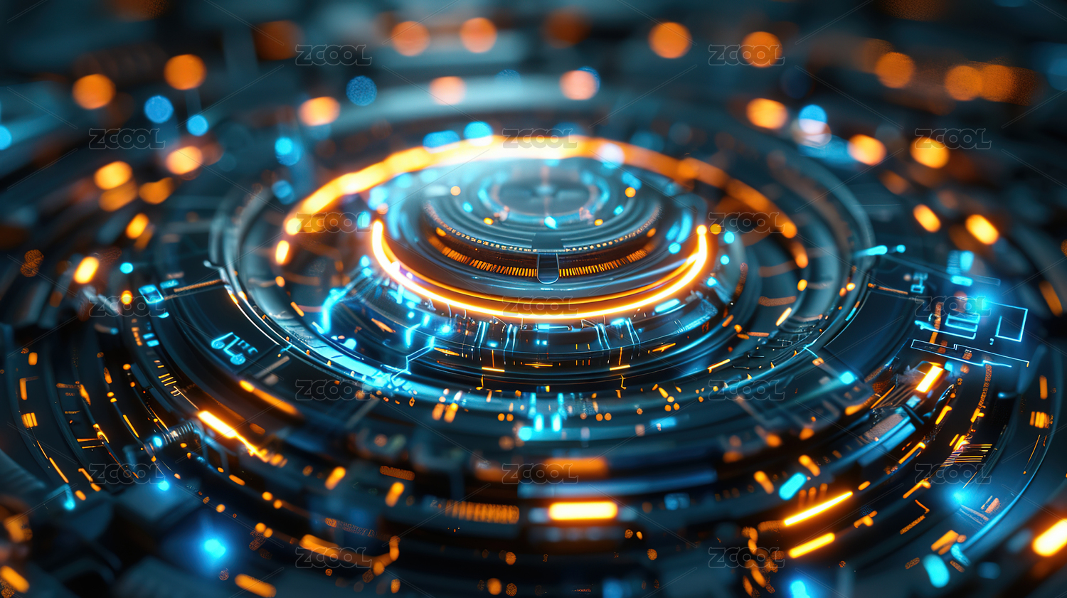 背景,电路板,蓝色,科技,未来,圆形,装置,橙色,深蓝,光效