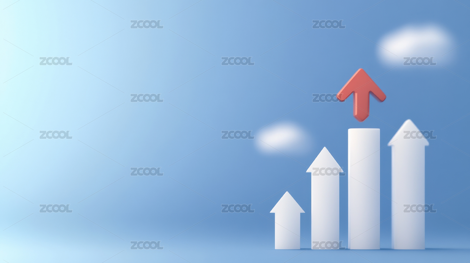 蓝色渐变玻璃质感金融柱状图增长箭头背景