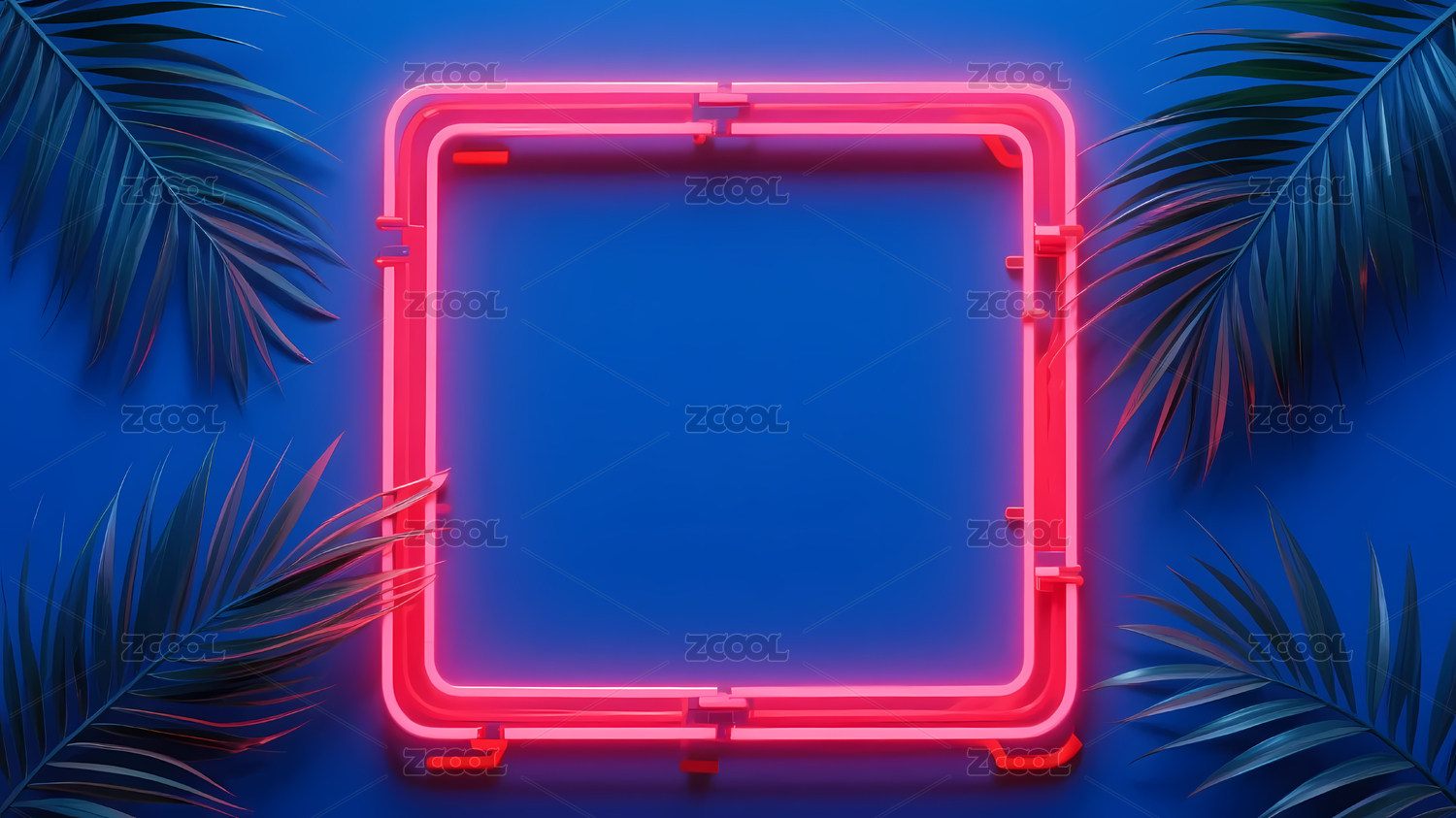 自然,背景,霓虹灯,红色,框架,深蓝,视觉,矩形,热带,树叶