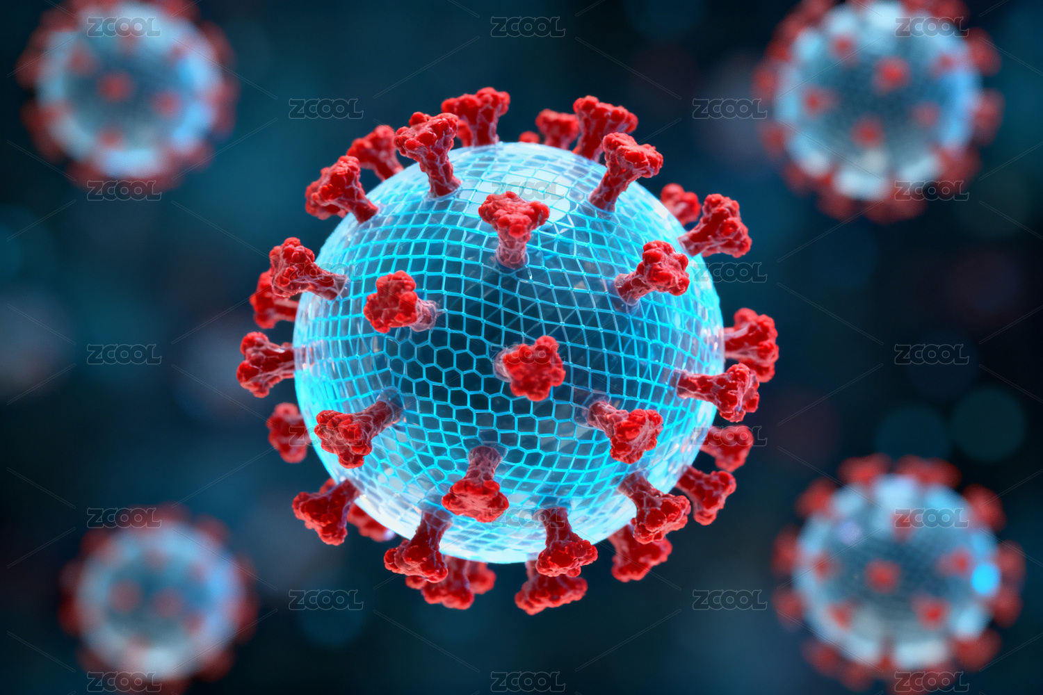 蓝色病毒颗粒红突起
