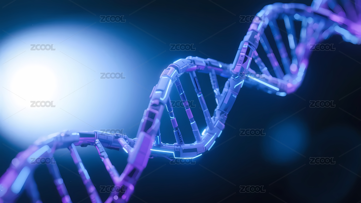 蓝紫色DNA双螺旋与光斑效果