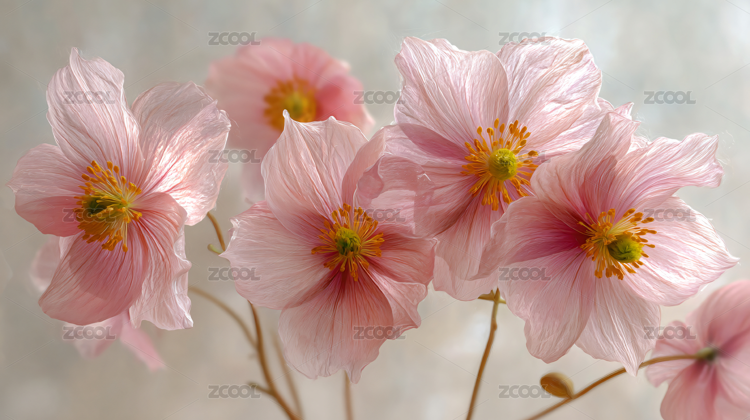 透明质感粉色花朵图