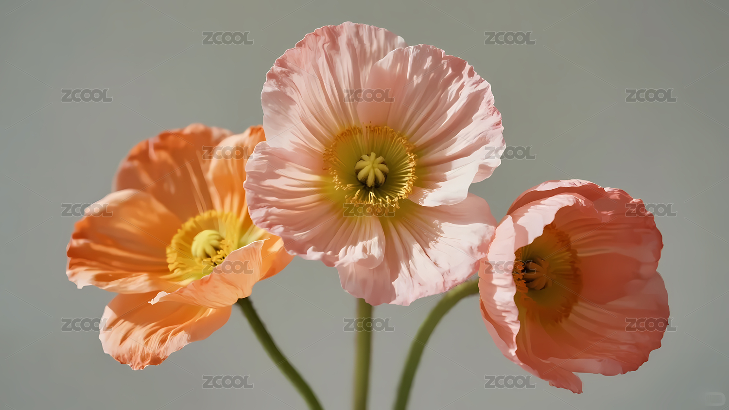 粉橙三朵花朵浅灰背景