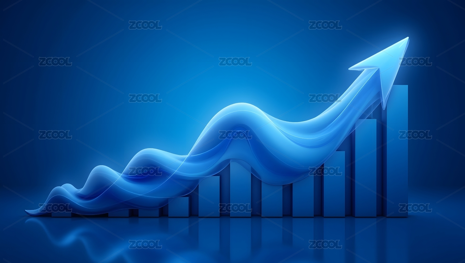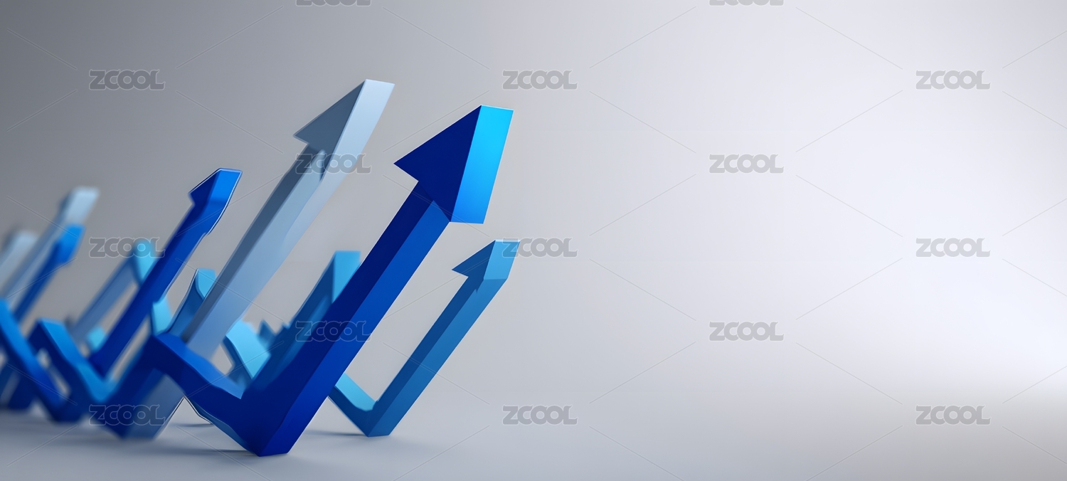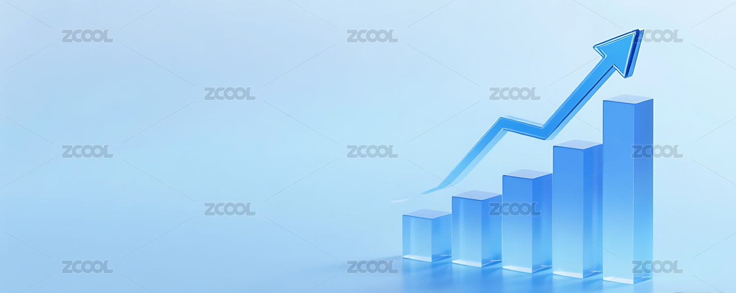 蓝色渐变柱状图与上升箭头