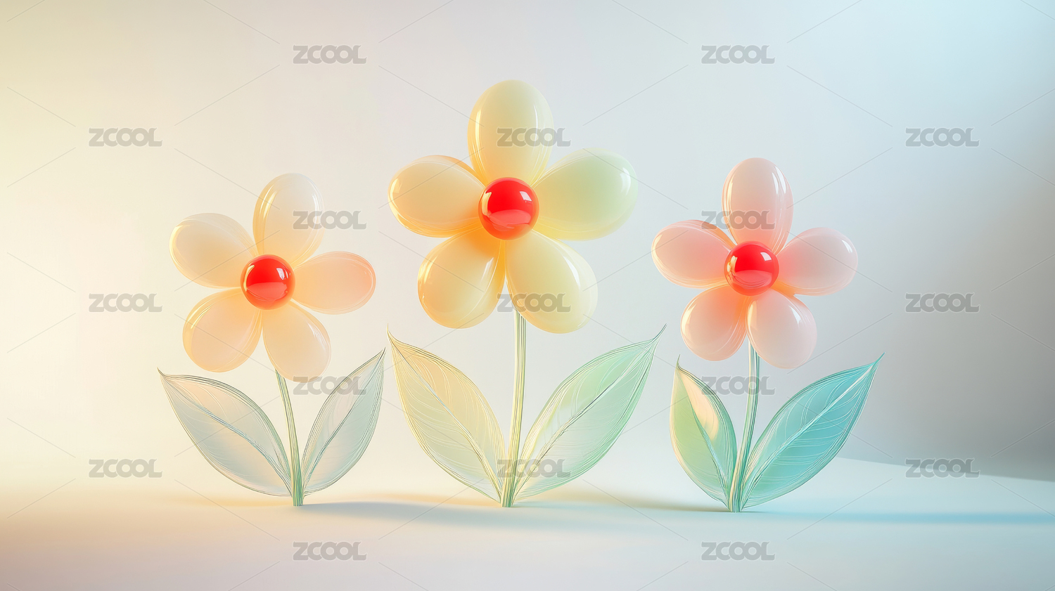 3D立体鲜花植物插图