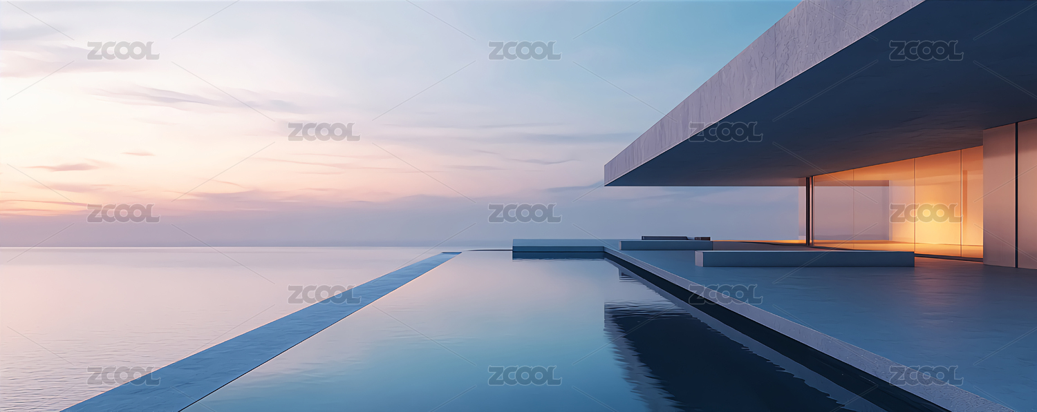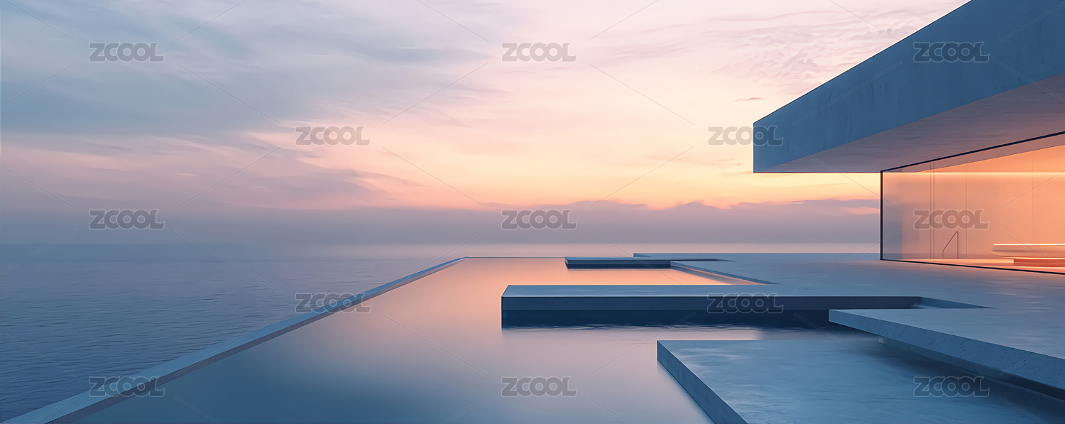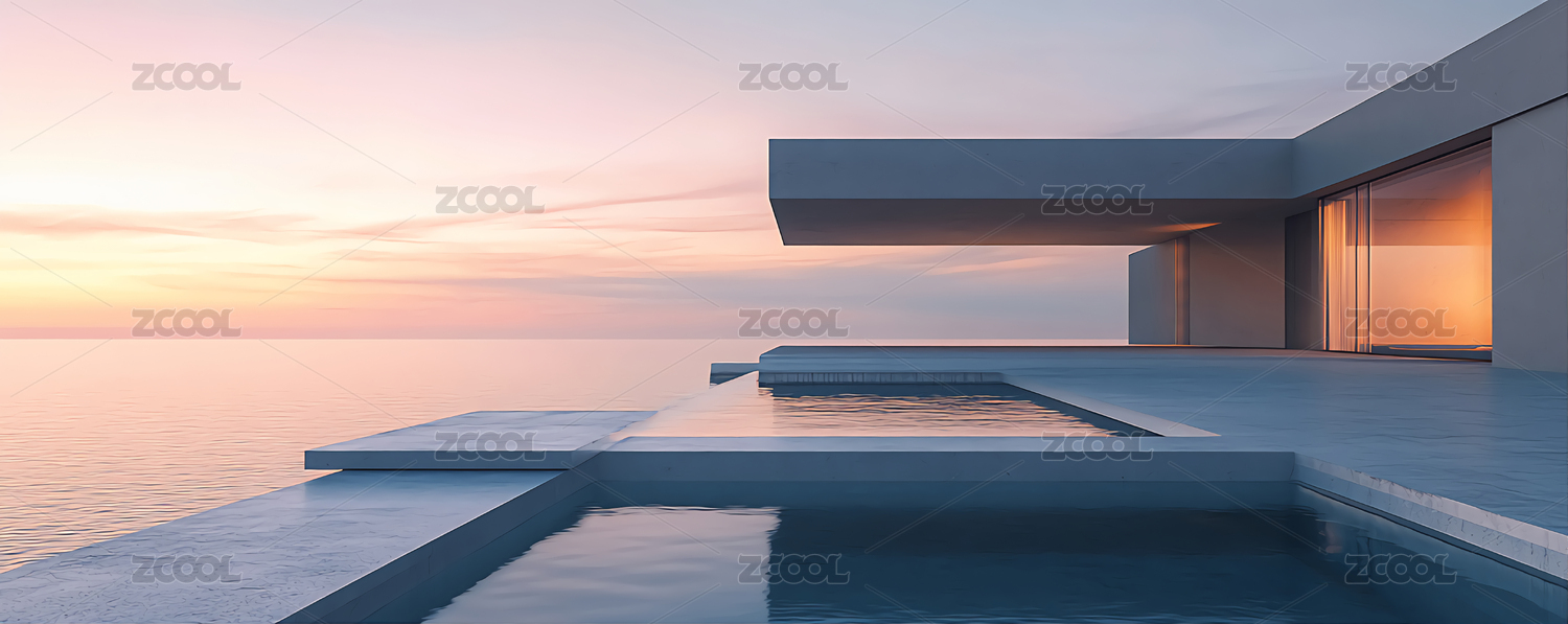 现代,极简,建筑,场景,背景,白昼,蓝天,白云,三维,3D