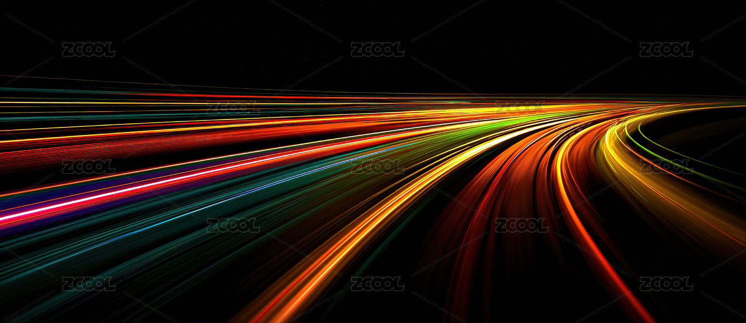 炫彩光轨蜿蜒于黑暗宇宙 抽象科幻感