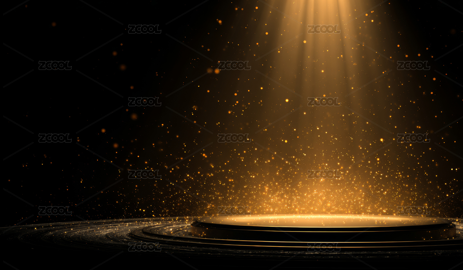 黑色平台与金色粒子的星空效果