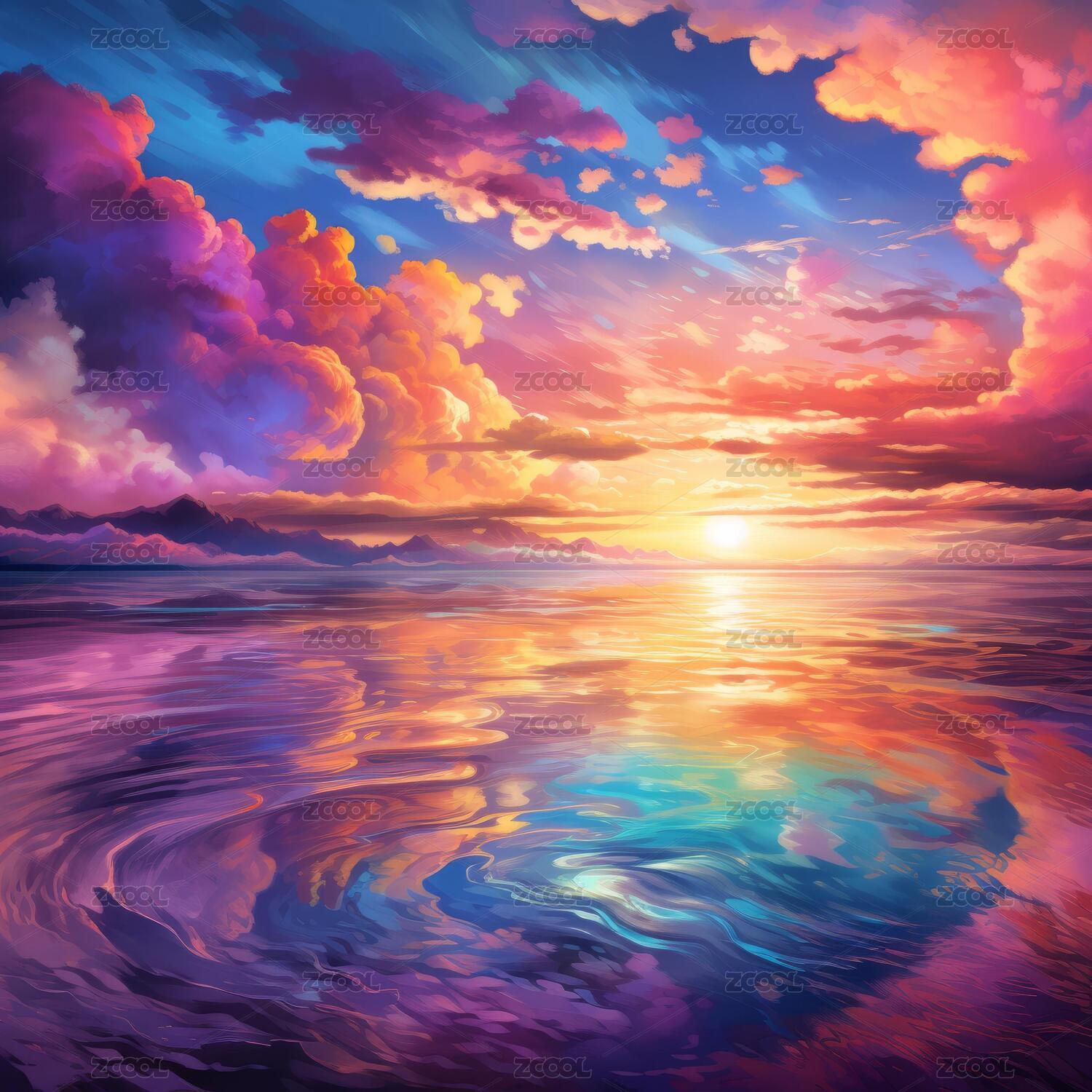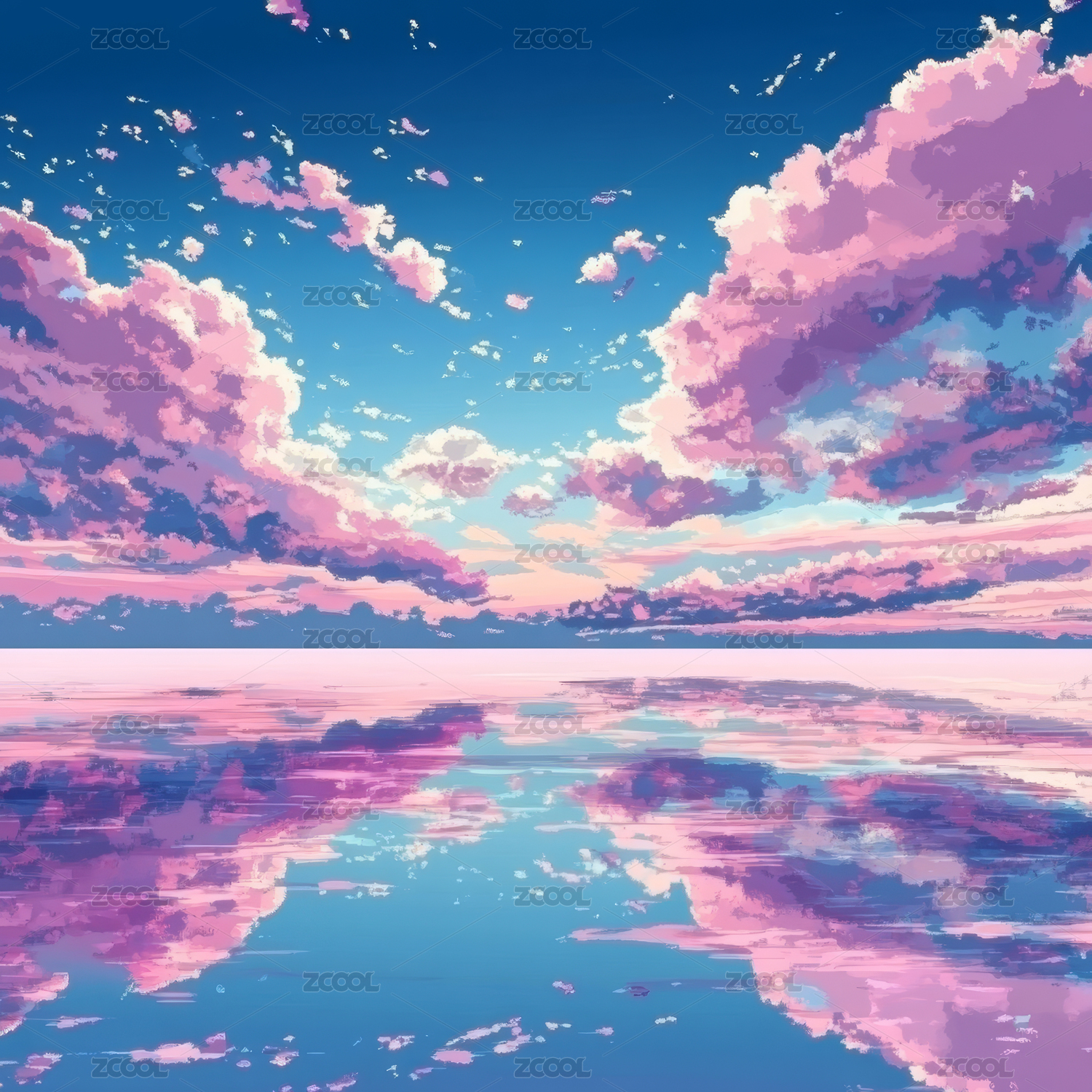唯美,梦幻,星空,云彩,水面,倒影,日落,月亮,云海,星光