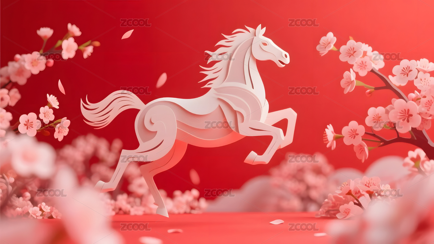 白马,樱花,花朵,插画,画面元素,主题,唯美,浪漫,艺术,花卉