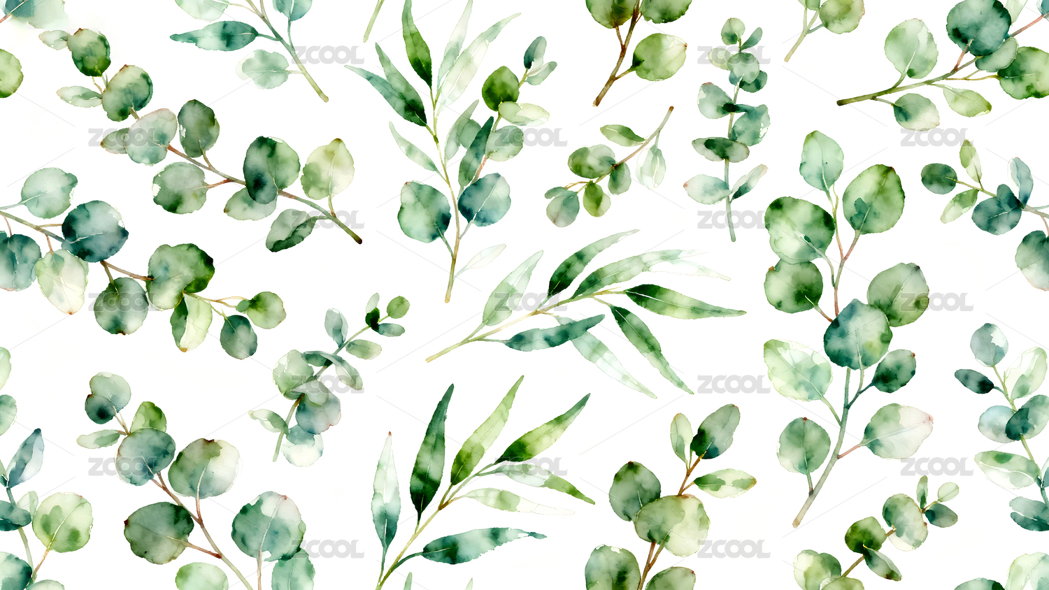 数码水彩蓝绿叶子印花图案抽象海报背景