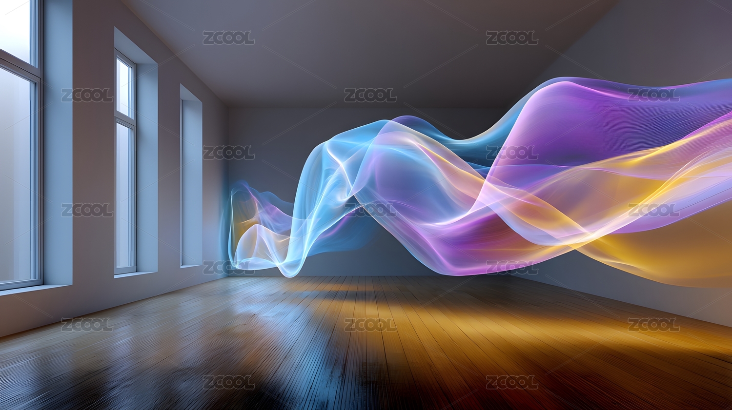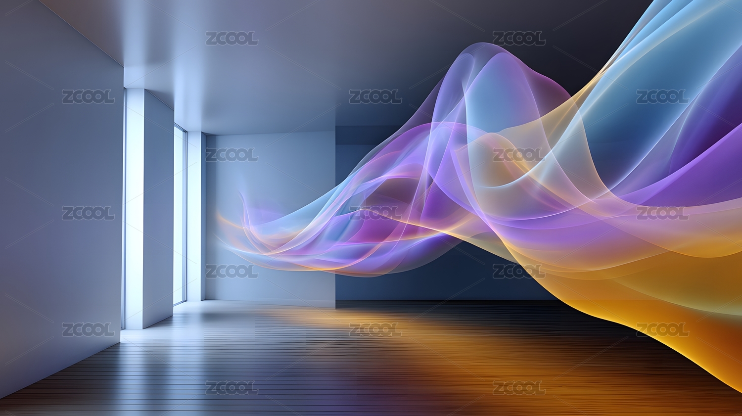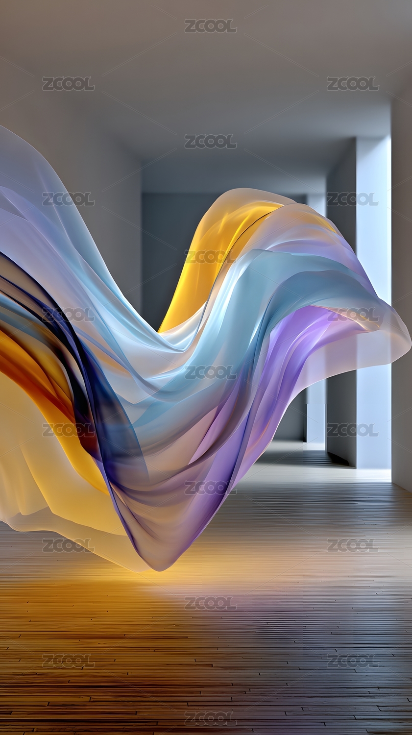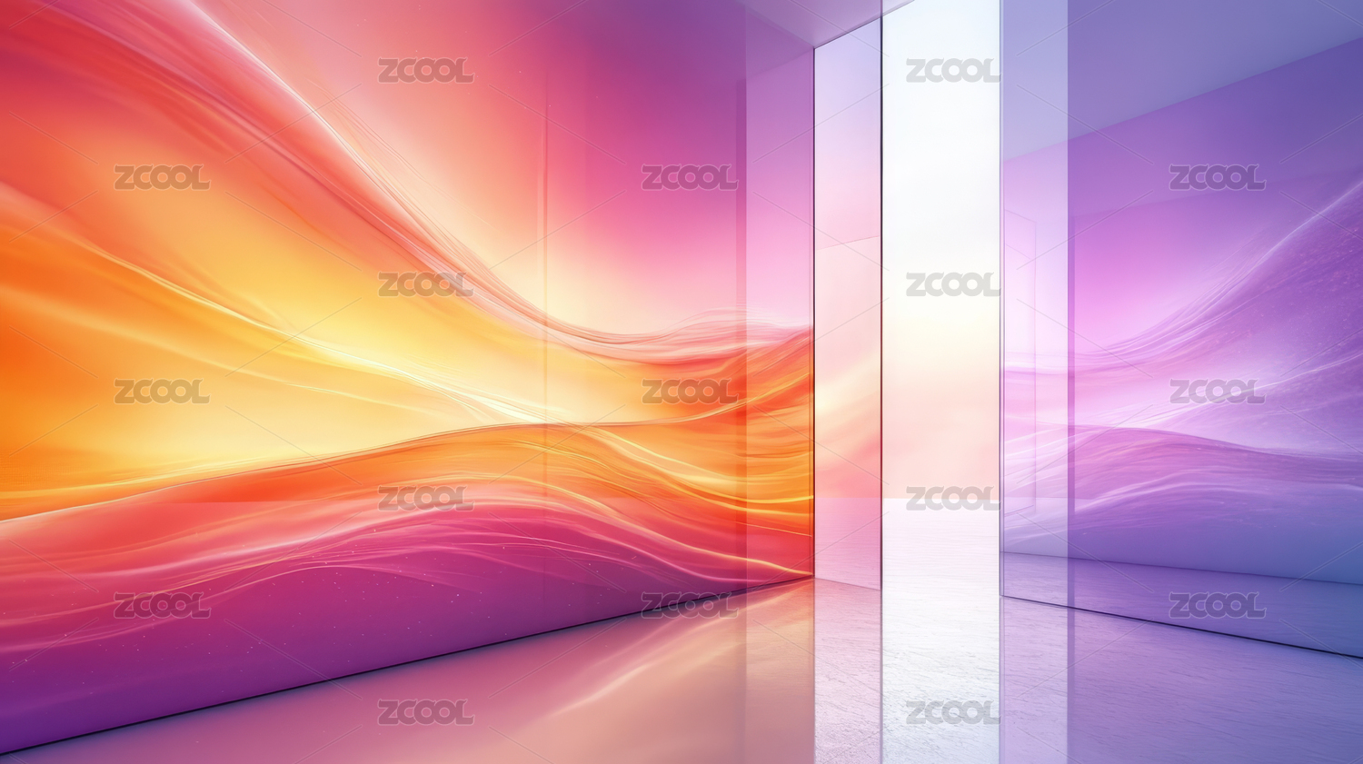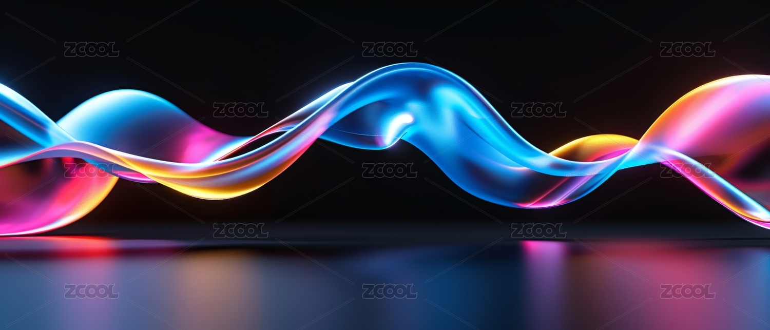 抽象彩色流动丝带透明玻璃科技商务主题背景