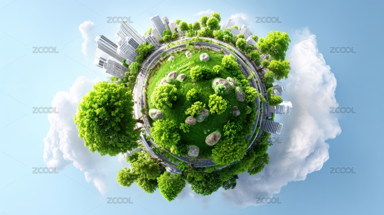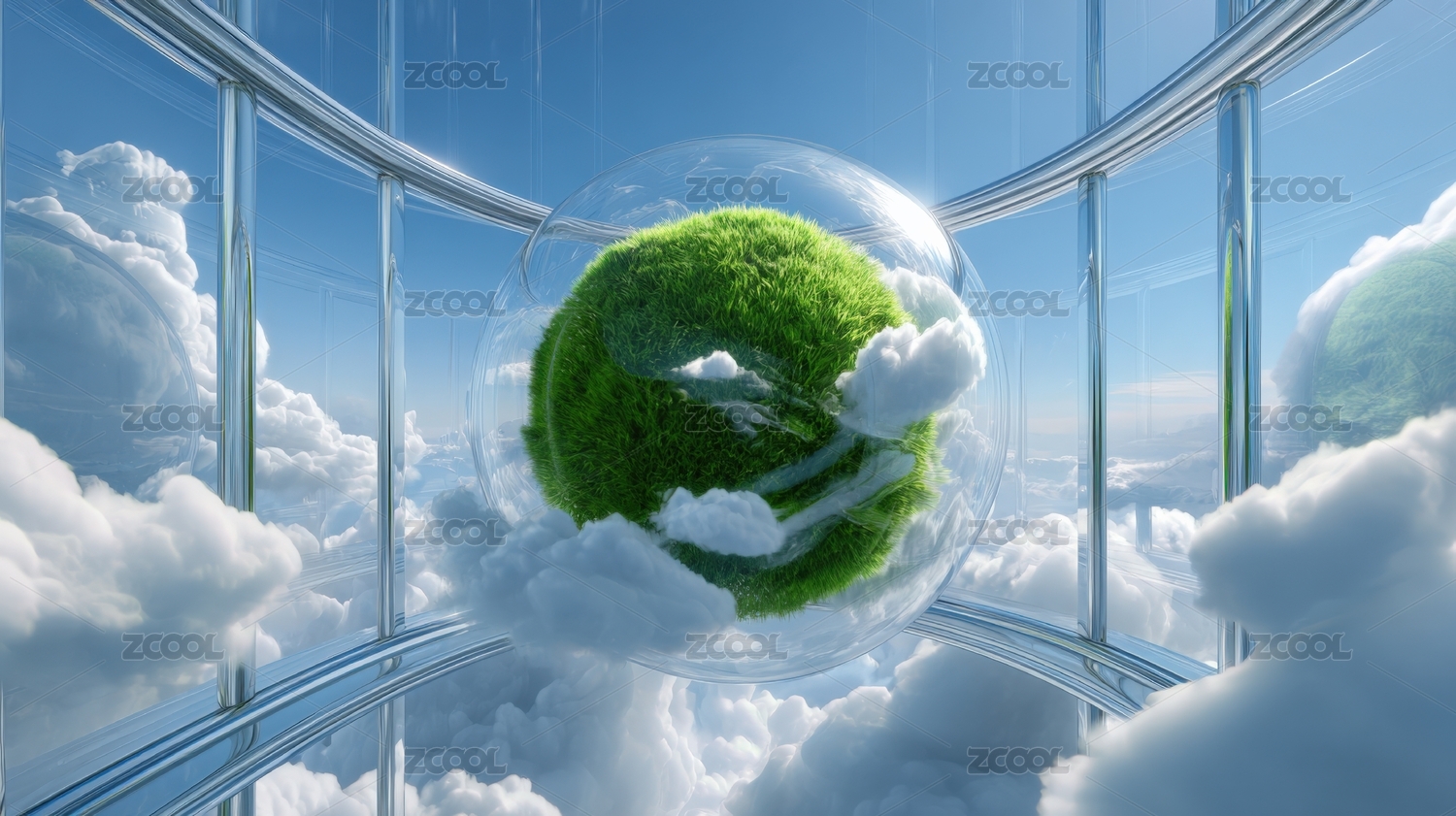 科技,科幻,未来,绿色,生态,居住,建筑,3D,立体,插画