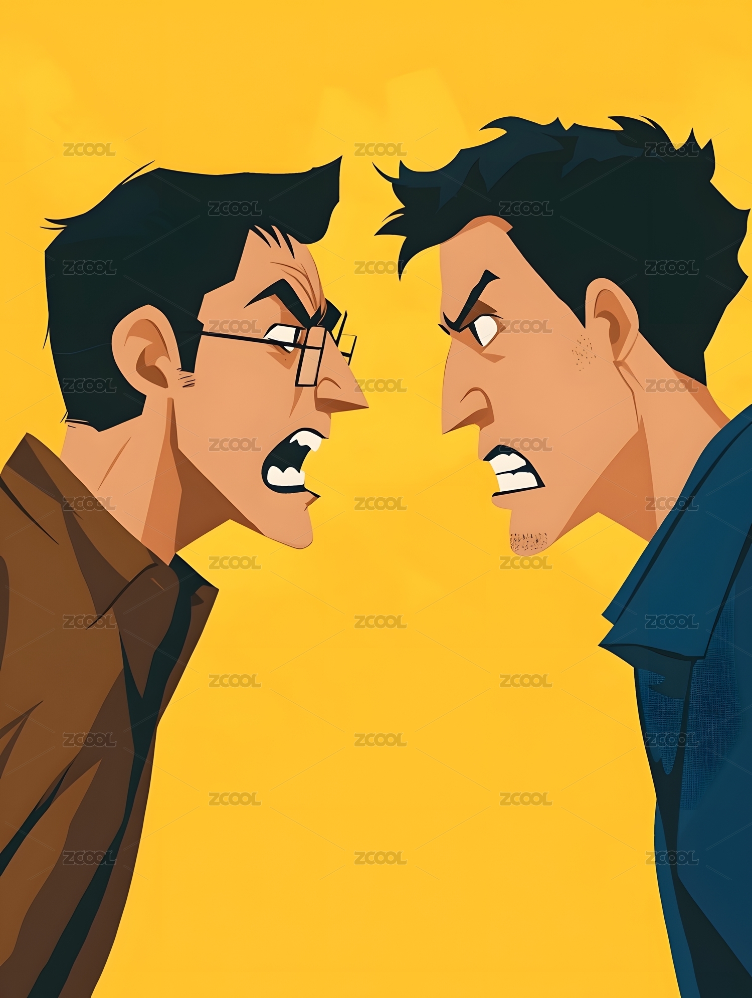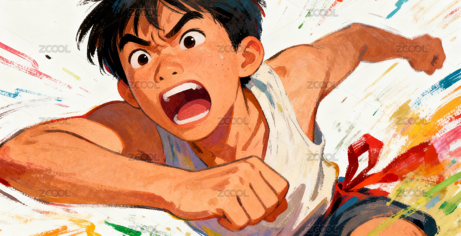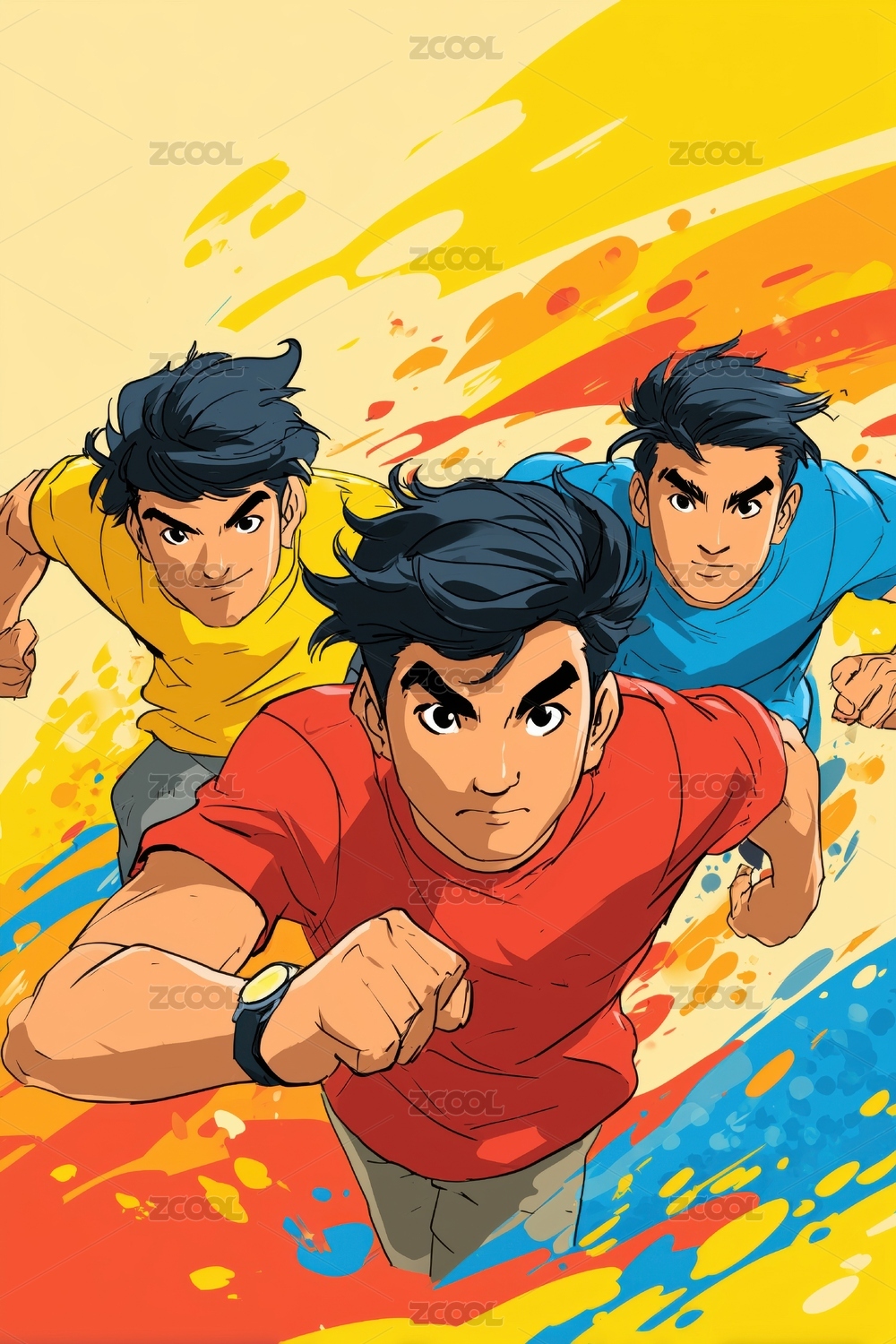 外卖大战3个奔跑的青年彩色国漫扁平插画