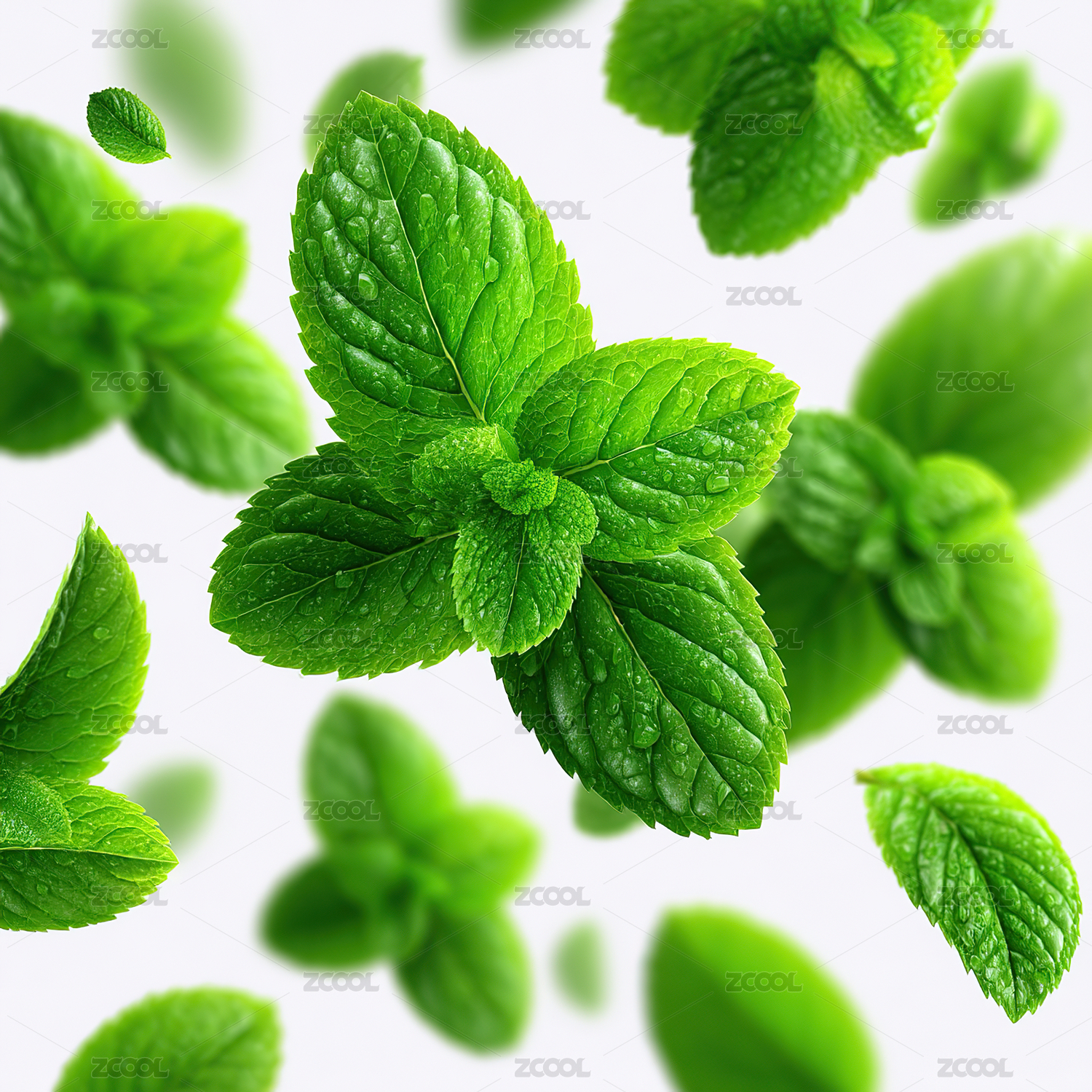 带水珠的薄荷叶和水面倒影美容护肤海报元素