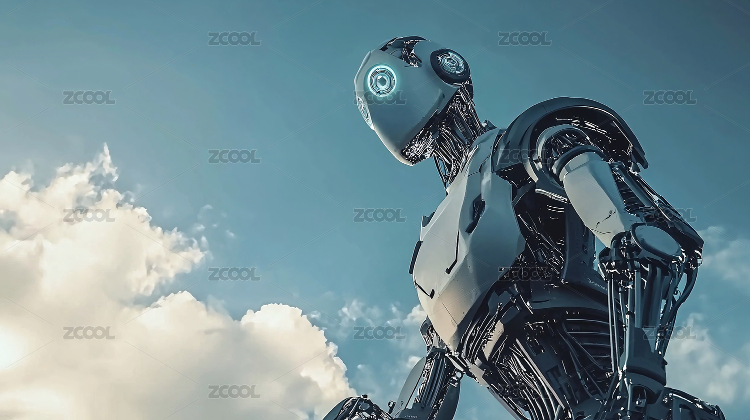 蓝天白云下的AI智能机器人插图