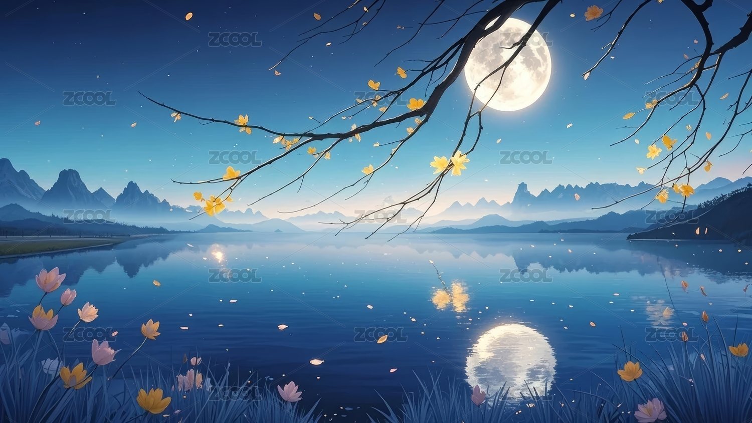 清新,艺术,月夜,海边,玫瑰,粉色,夜晚,静谧,浪漫,星光