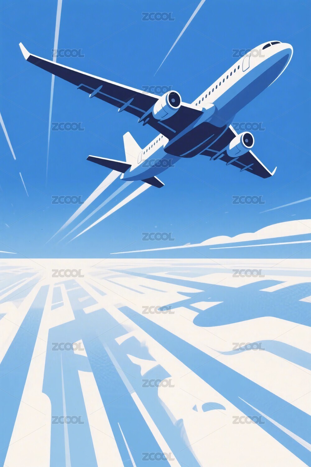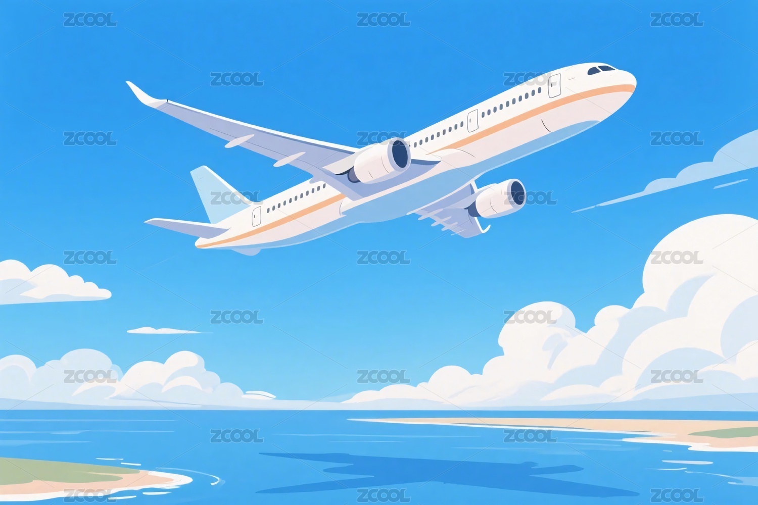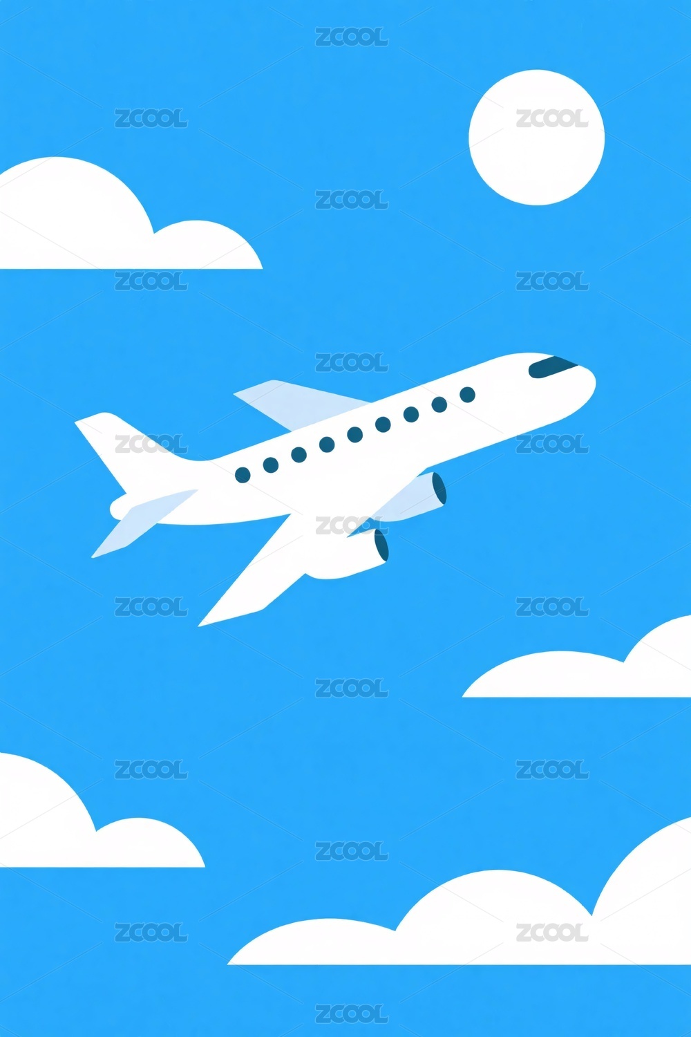 飞机,飞行,蓝天,月亮,白云,插画,背景,天空,云朵,航空
