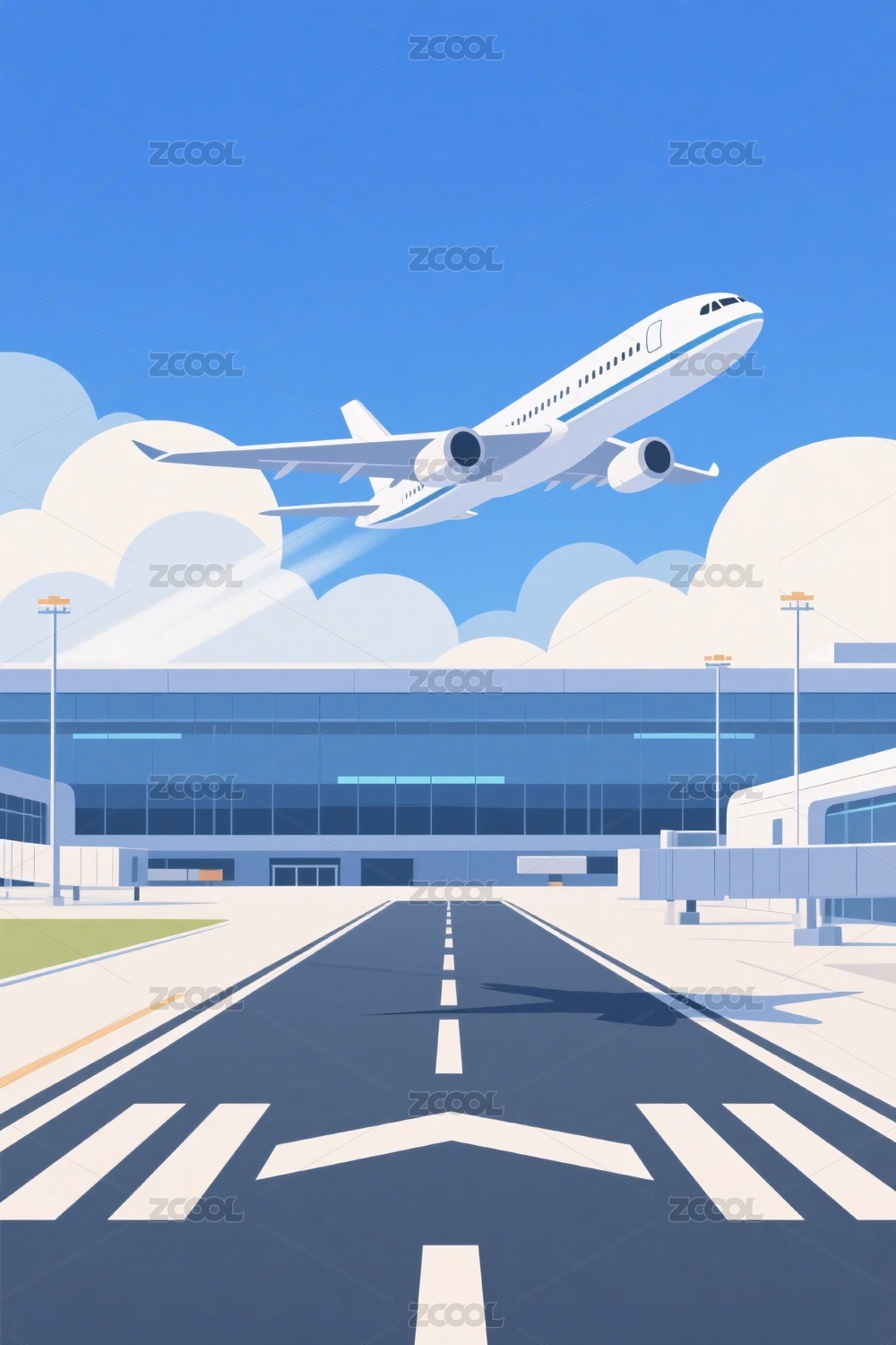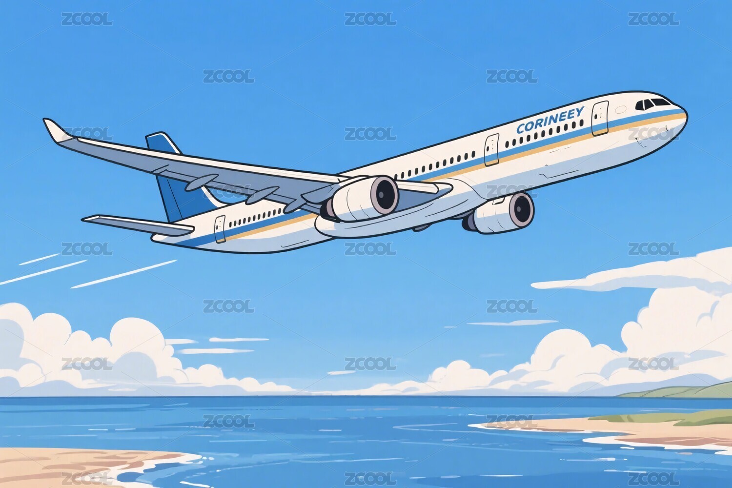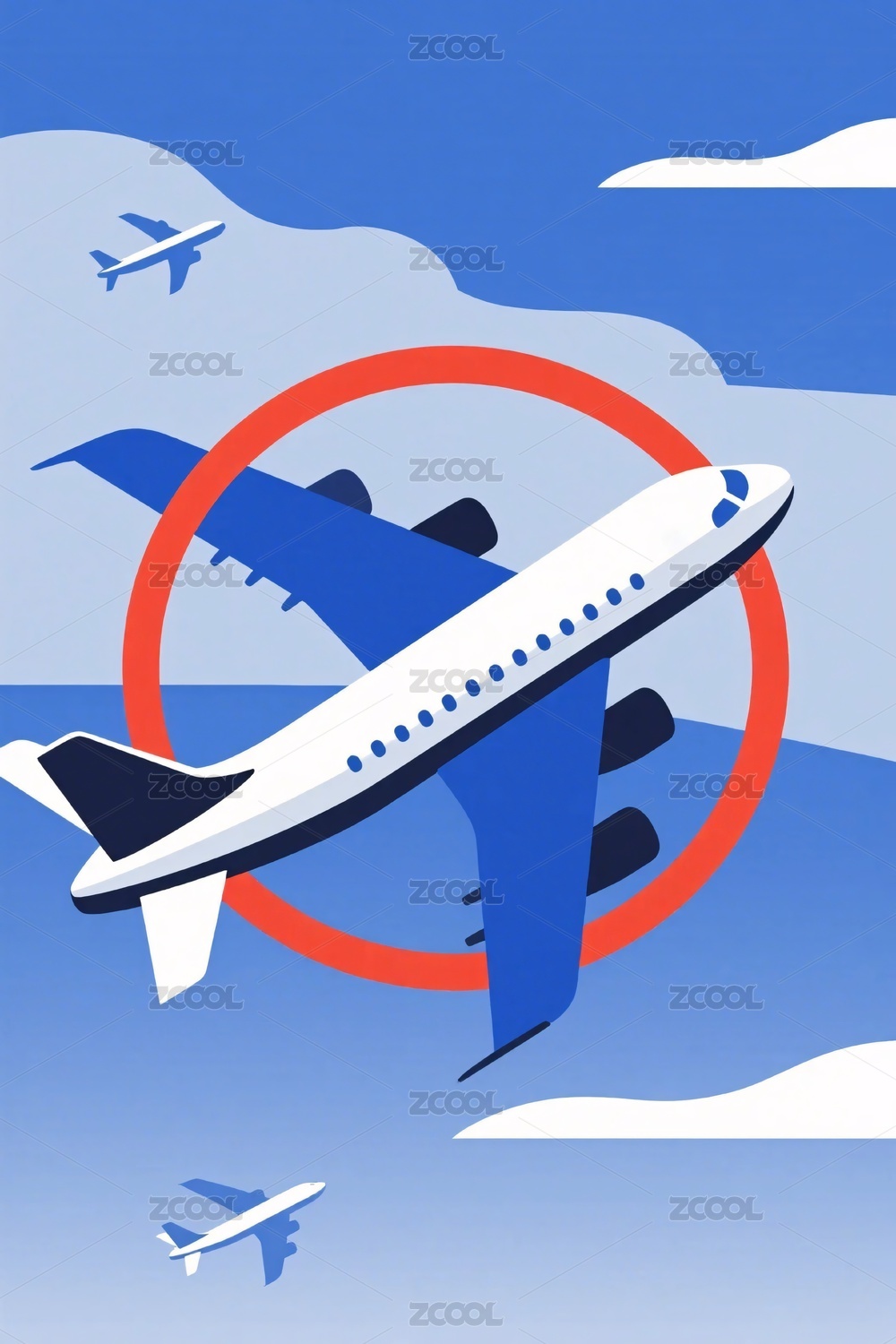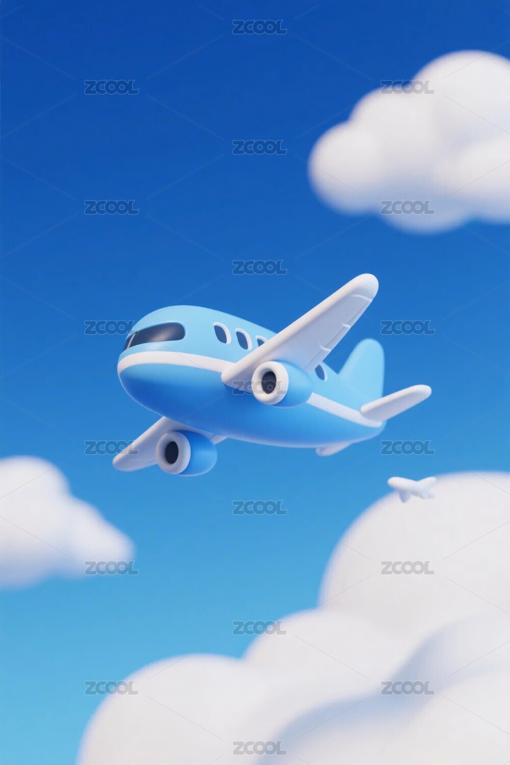 飞机,飞行,蓝天,月亮,白云,插画,背景,天空,云朵,航空