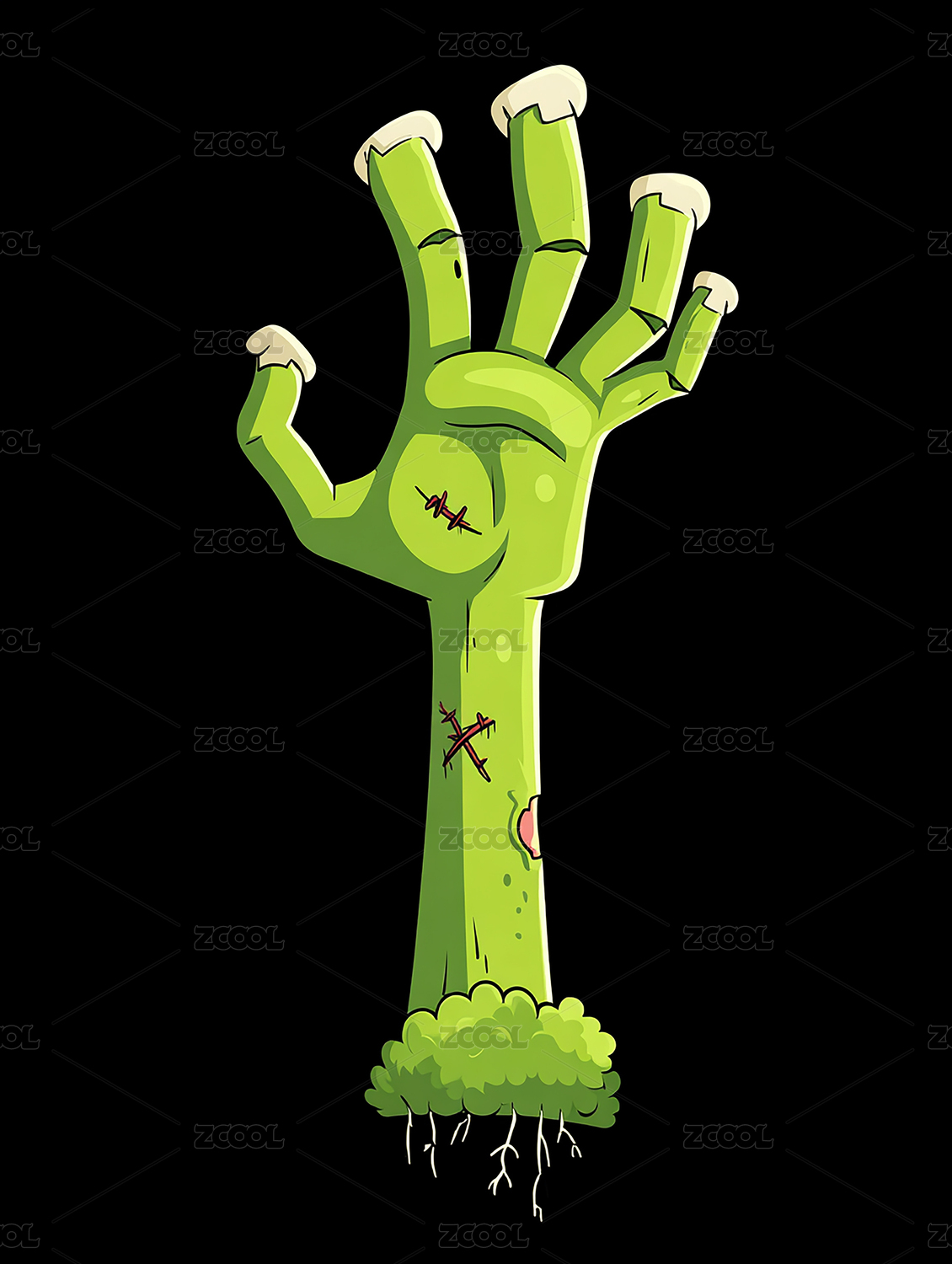 卡通,僵尸,绿色,手,搞怪,动作,诡异,惊悚,特写,奇幻