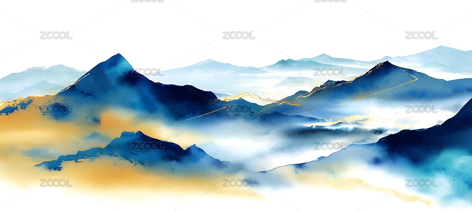 新中式蓝金色山水背景