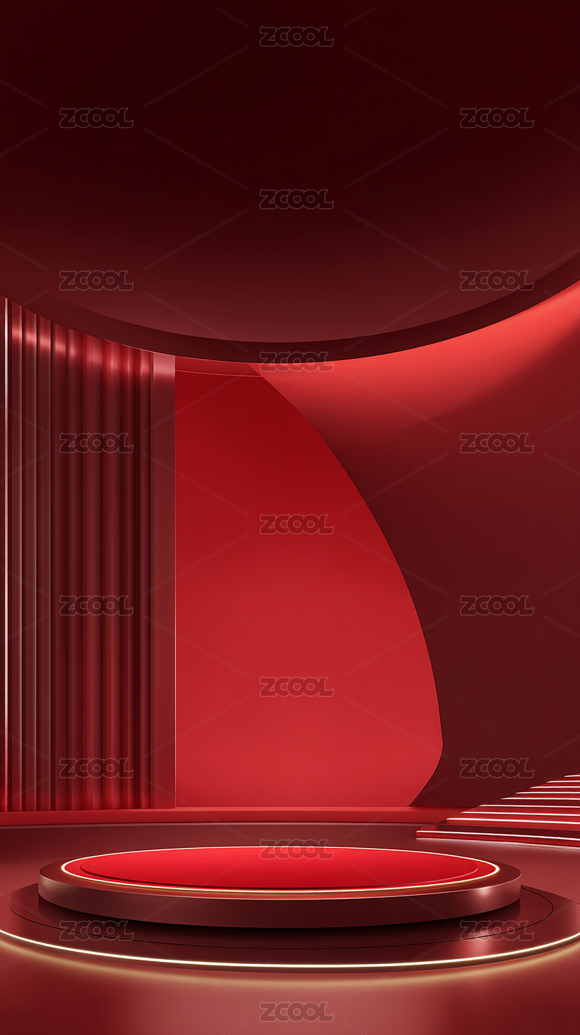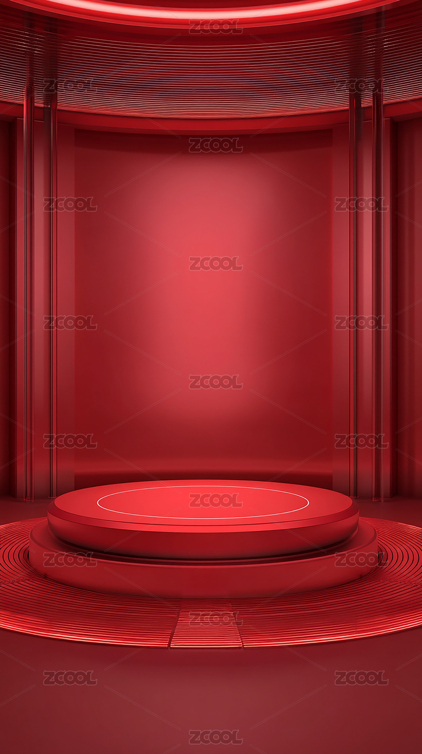 红色光效圆形展台科技场景