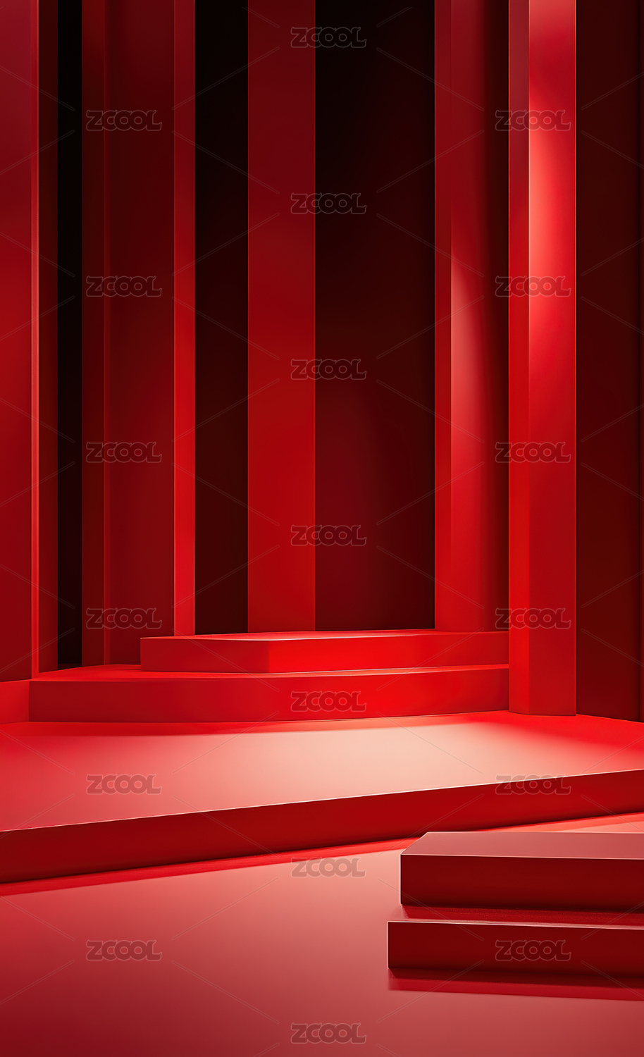 红色舞台聚光灯下的展示空间