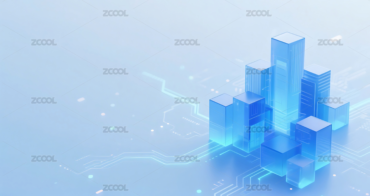 商务科技玻璃透明质感几何方块城市建筑