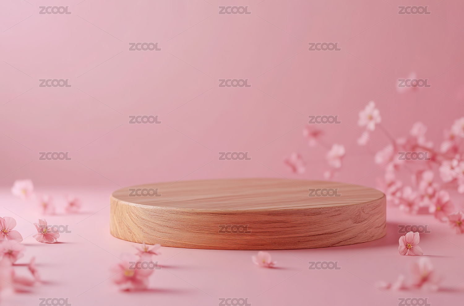 粉色背景花朵环绕产品展示台