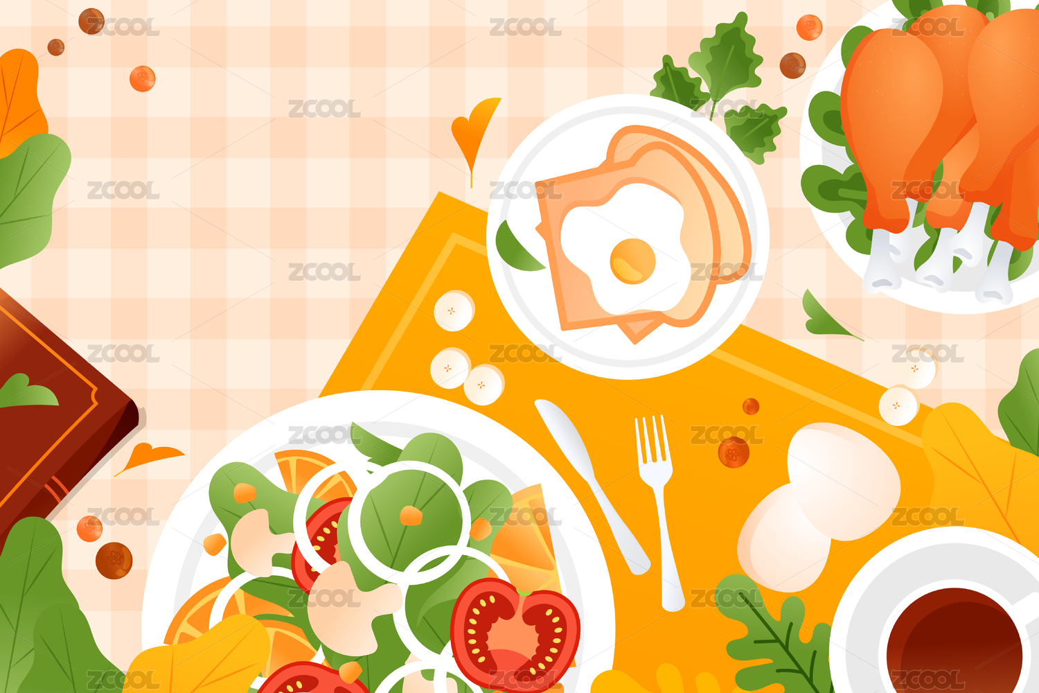 卡通团圆饭吃饭美食中餐外卖活动背景矢量插画