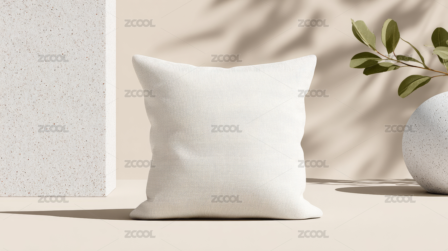 阳光下的宁静角落米色靠垫与柔和光影交织