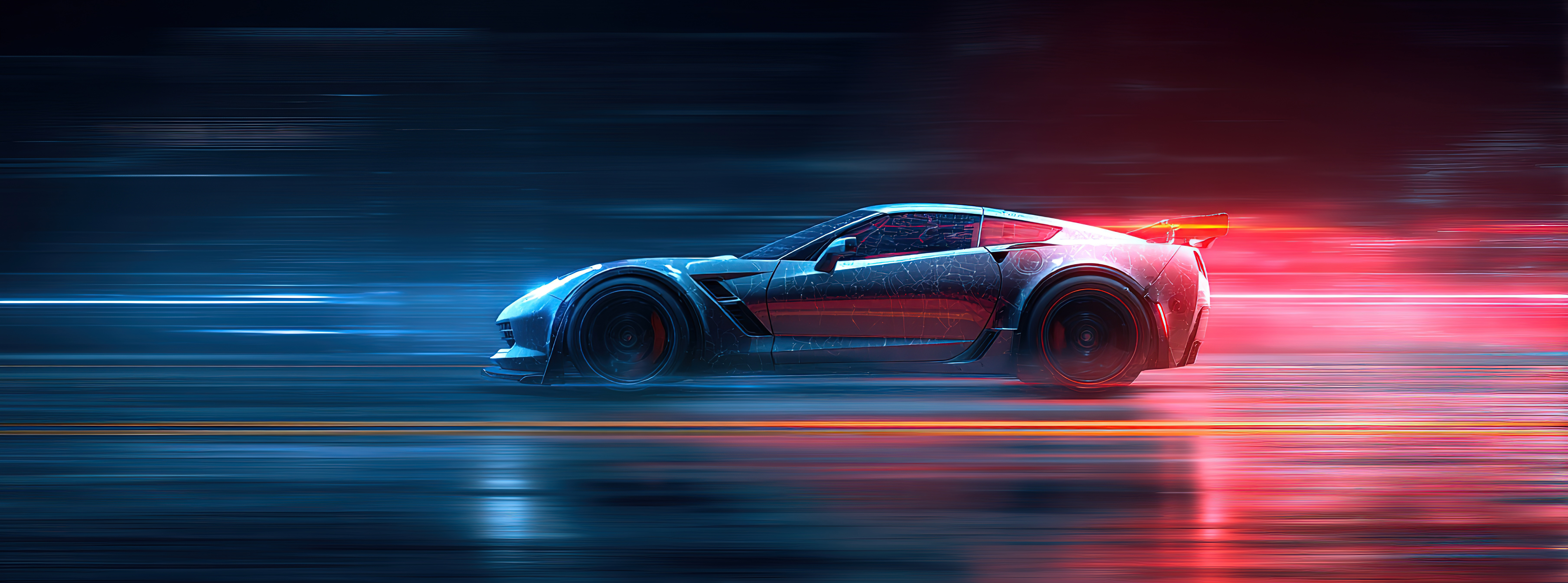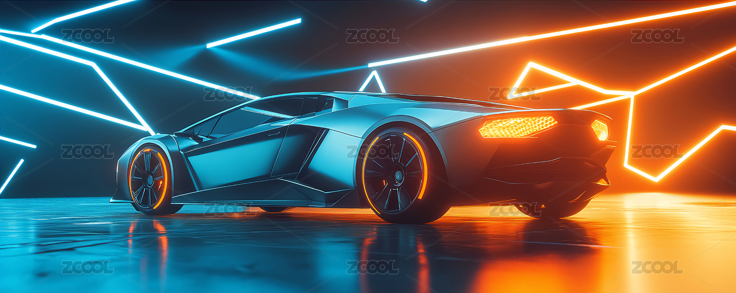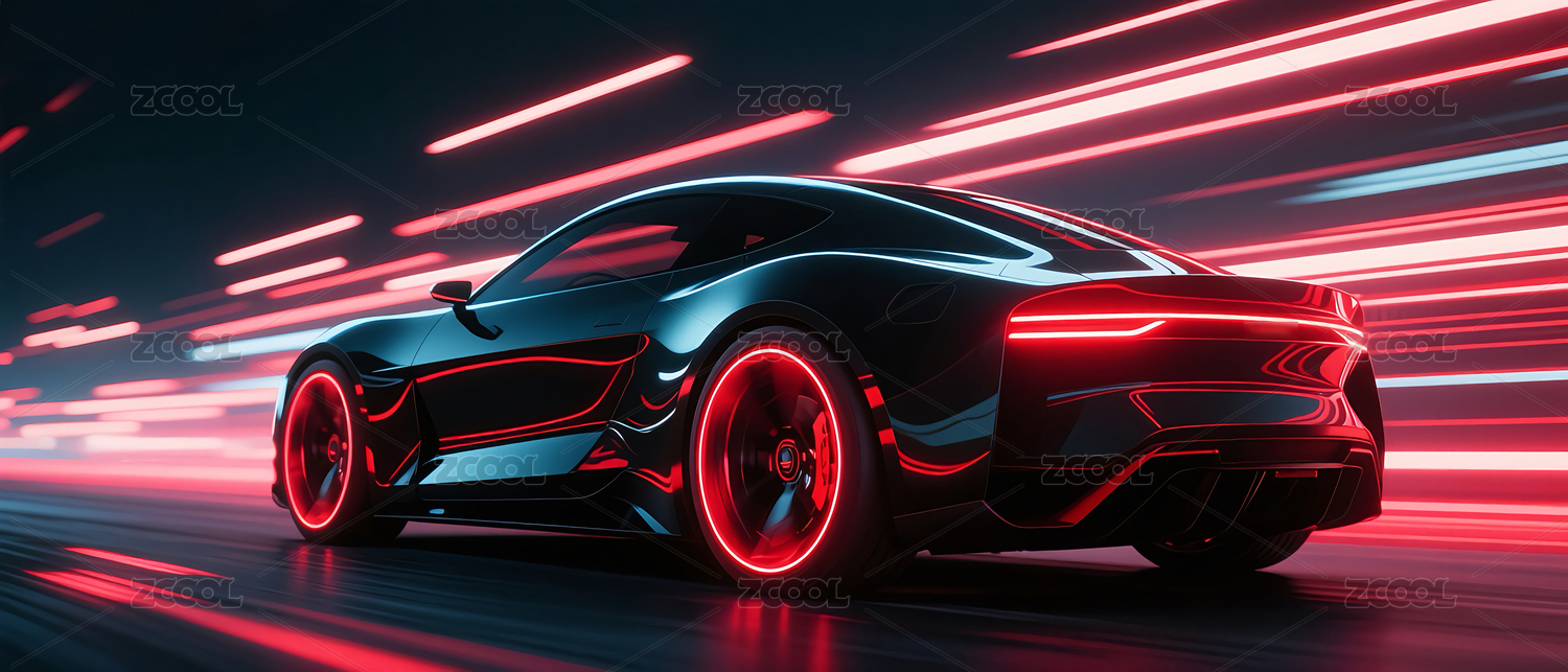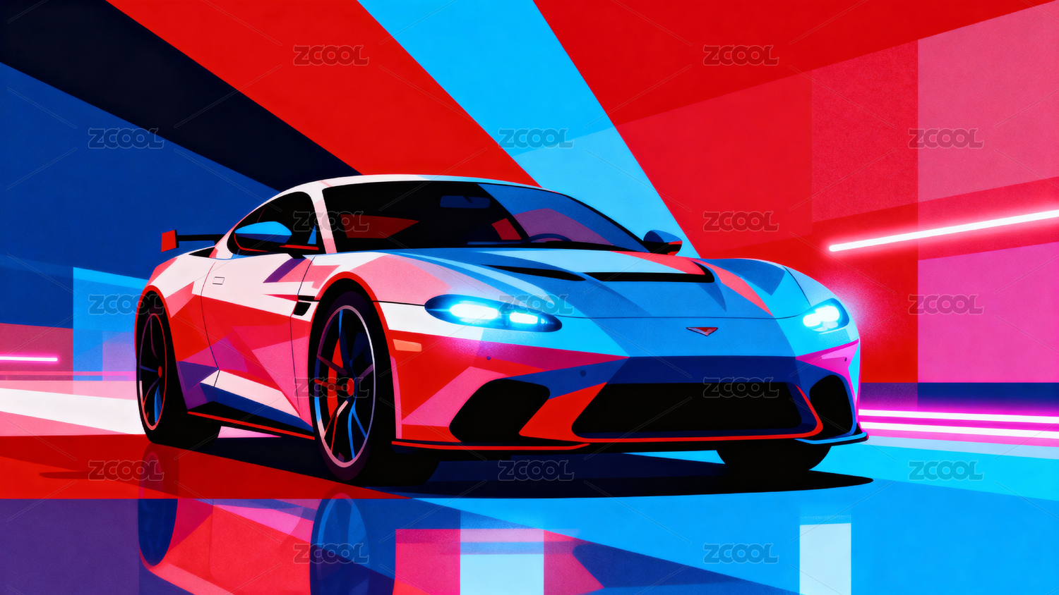 汽车复古蒸汽波霓虹灯抽象艺术风格怀旧插画