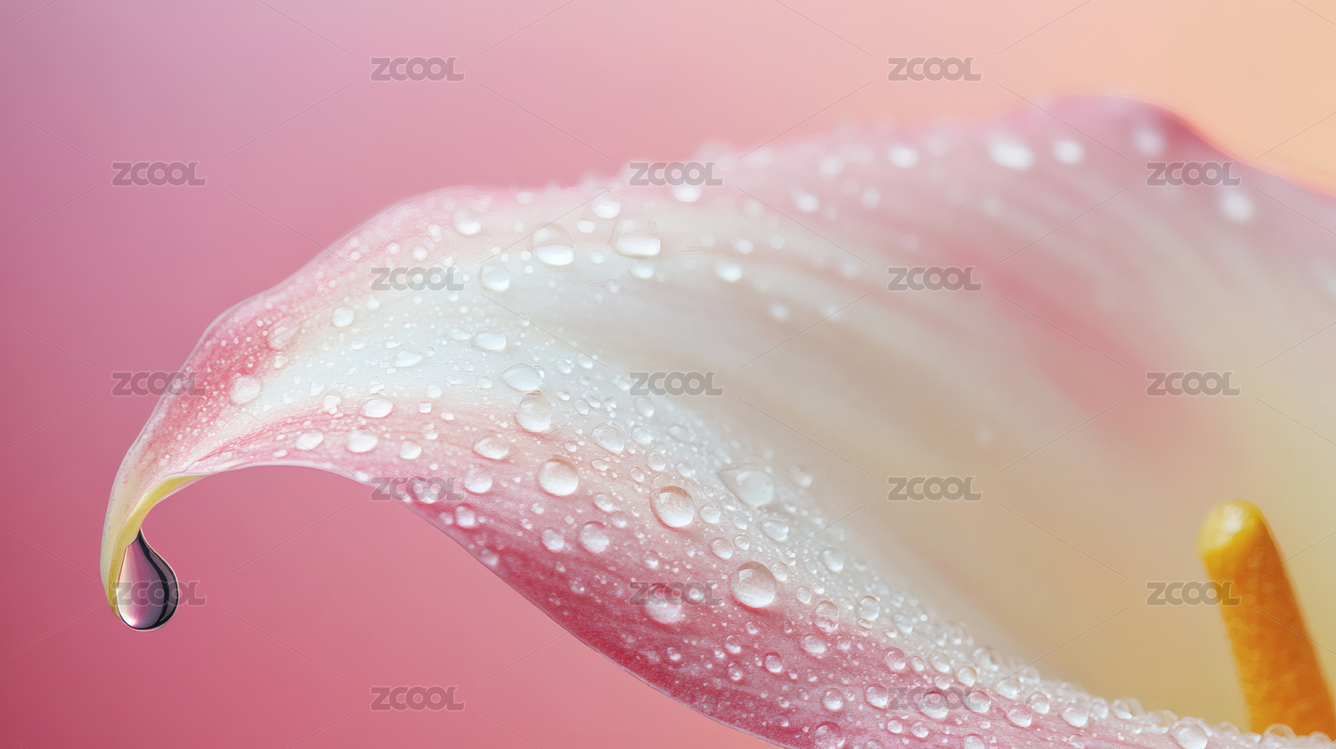 水珠点缀下的白色马蹄莲绽放 唯美梦幻意境