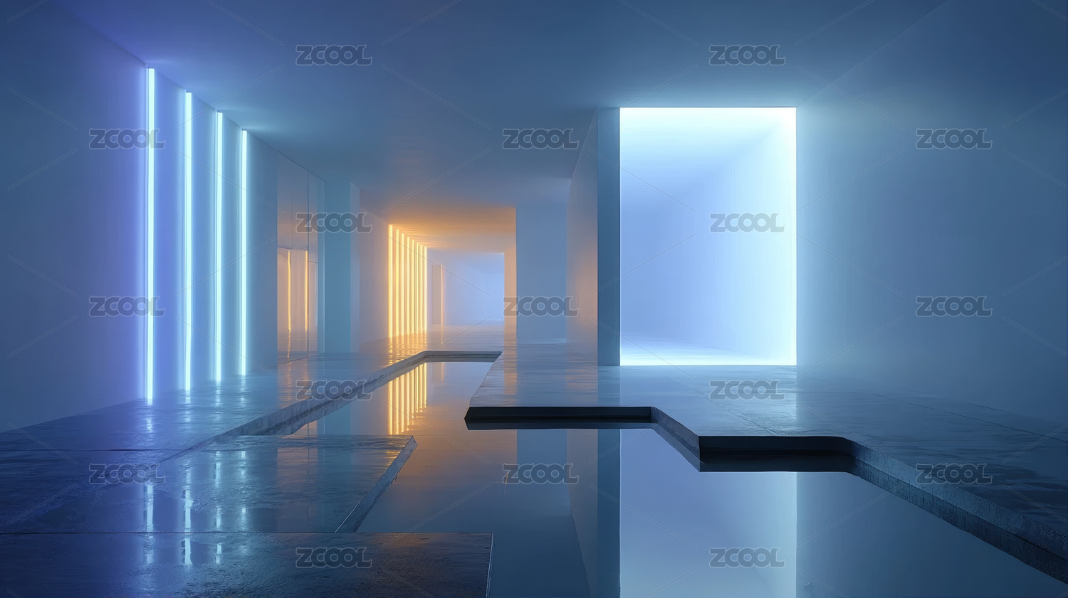 赛博朋克建筑室内空间展厅未来科技展台虚构