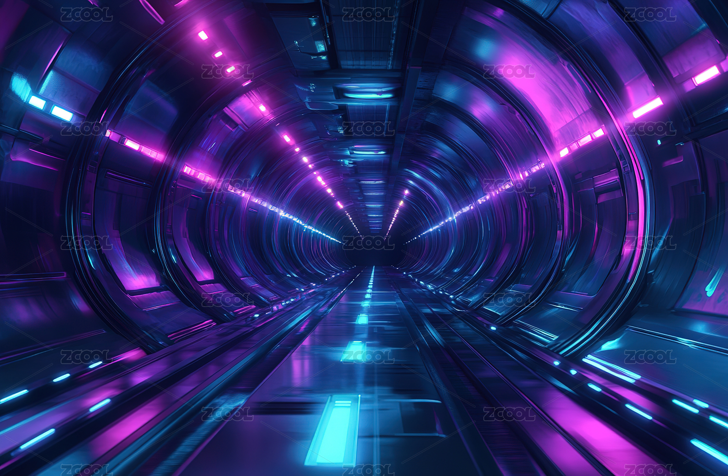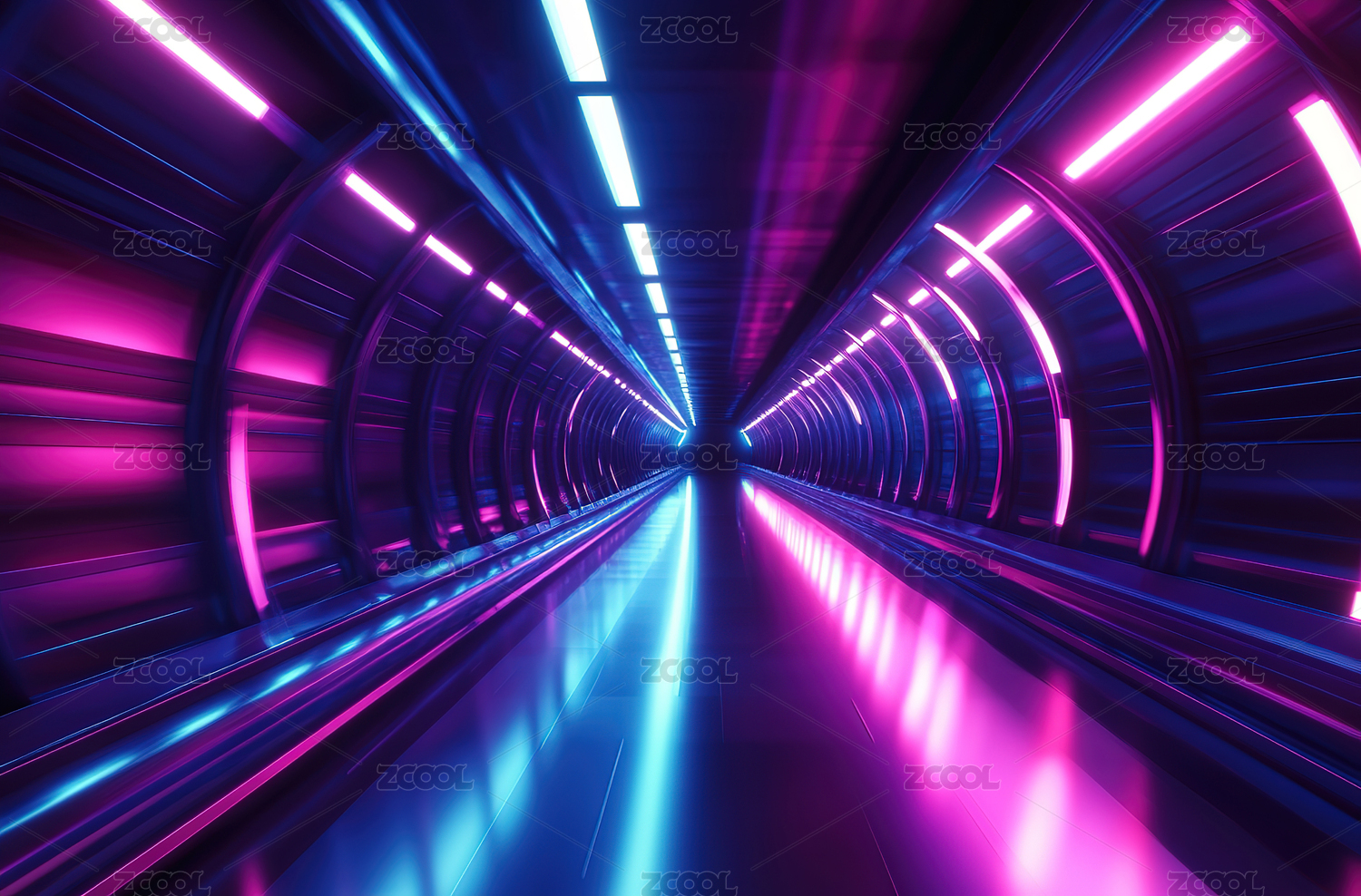 霓虹灯光隧道未来科技感空间