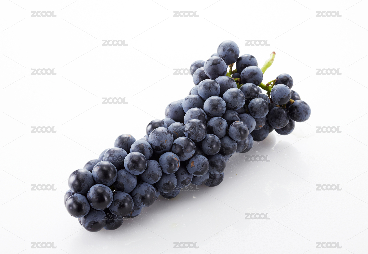 喷着水雾的新鲜深紫色葡萄,在白色背景里