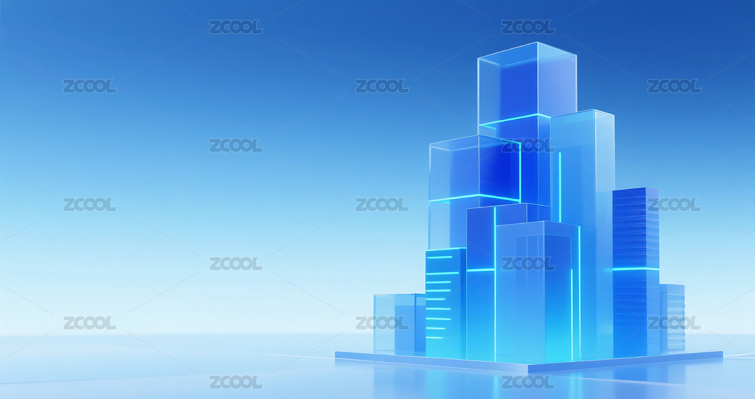 蓝色科技几何方块玻璃质感城市建筑