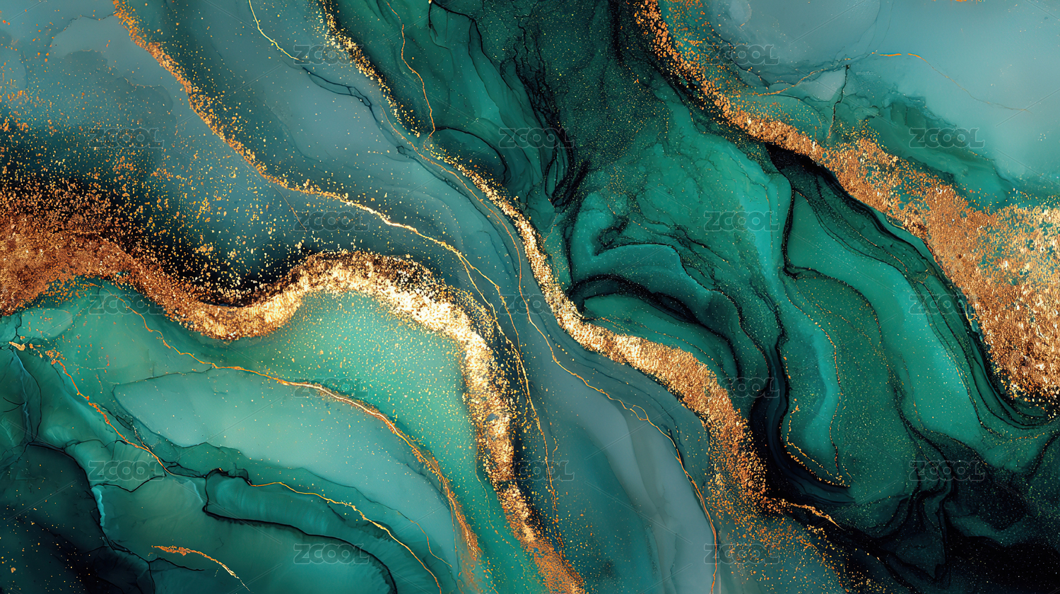 金色绿色相间的大理石纹理背景