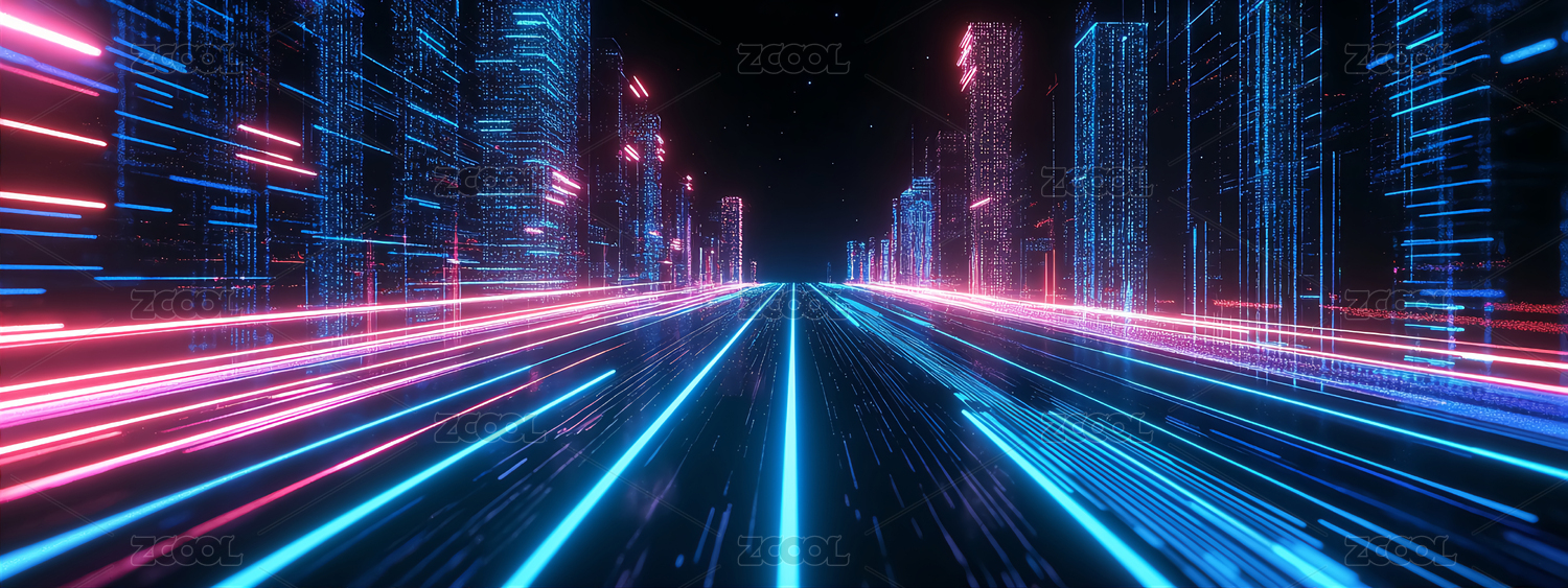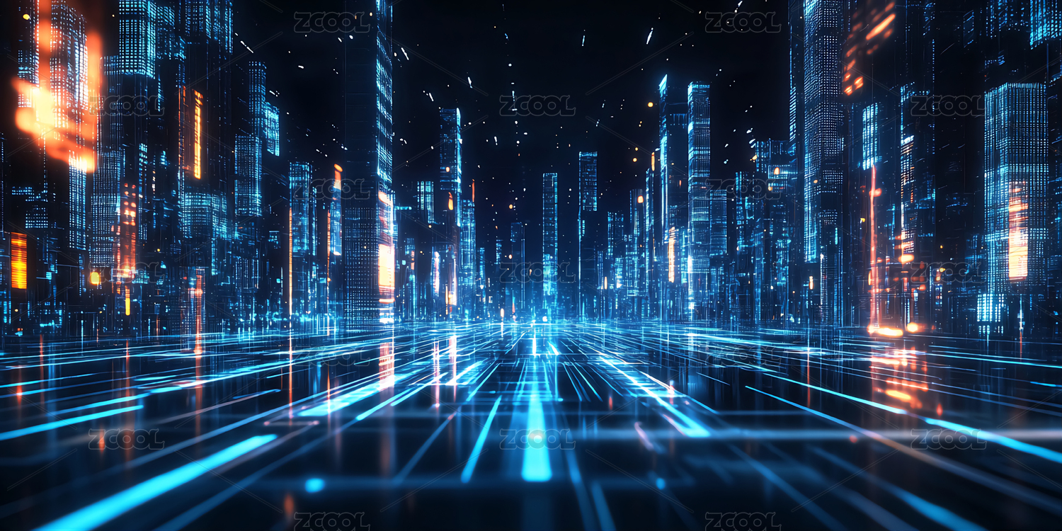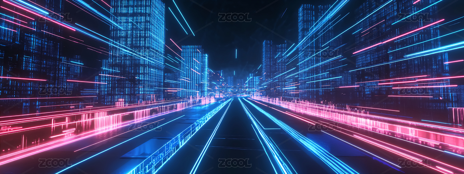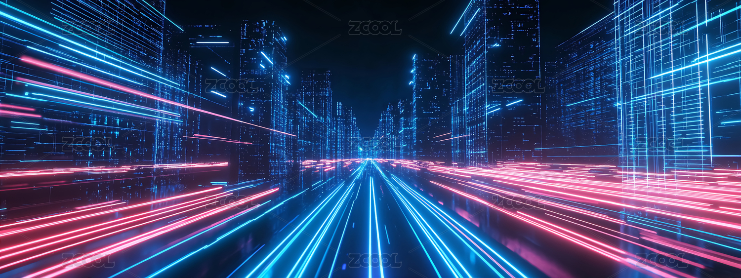 蓝色,红色,光线,未来,科技,数据,线路,建筑,灯光,城市