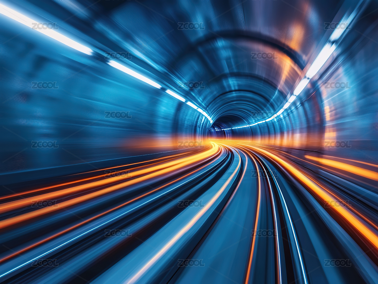 黑暗隧道与发光照明,抽象技术速度概念三维