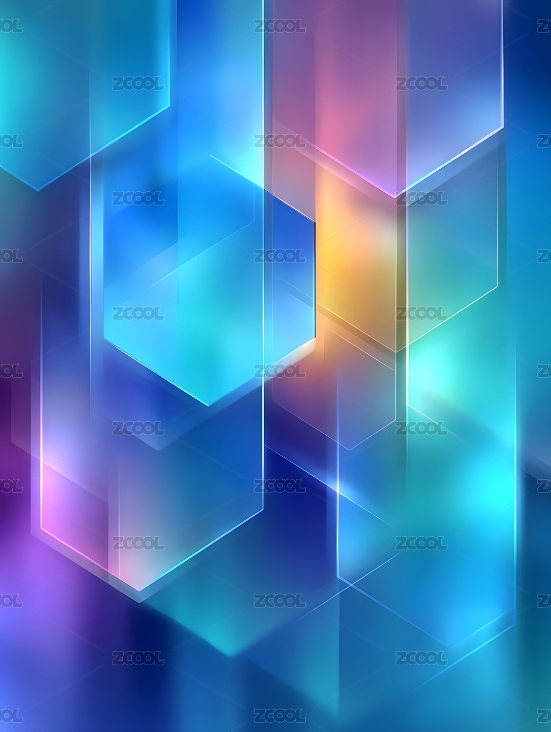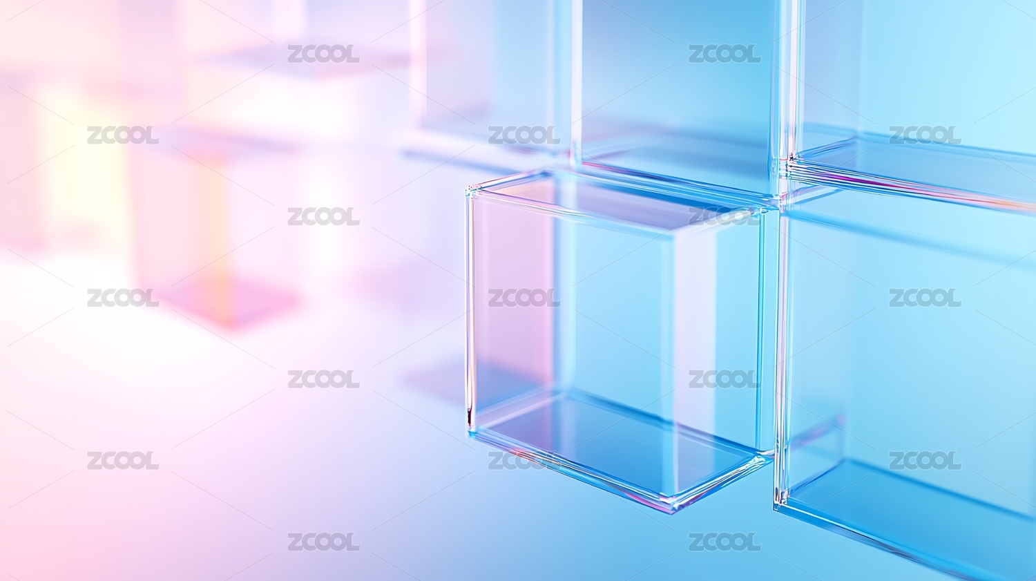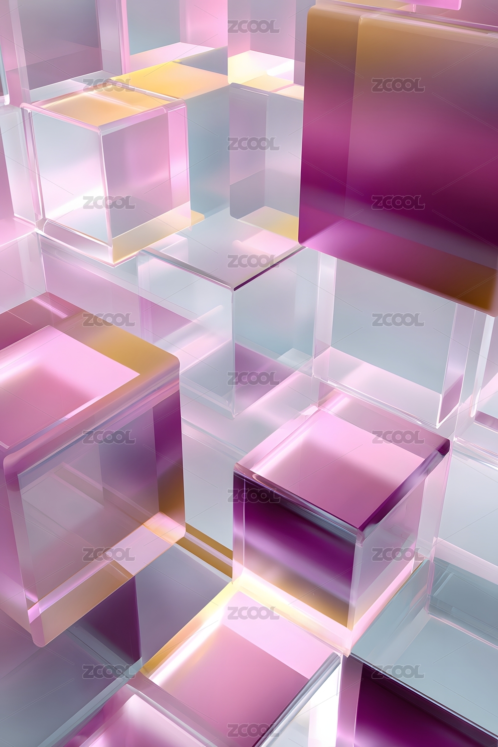 层叠排列荧光色立方体玻璃晶体3D立体插画