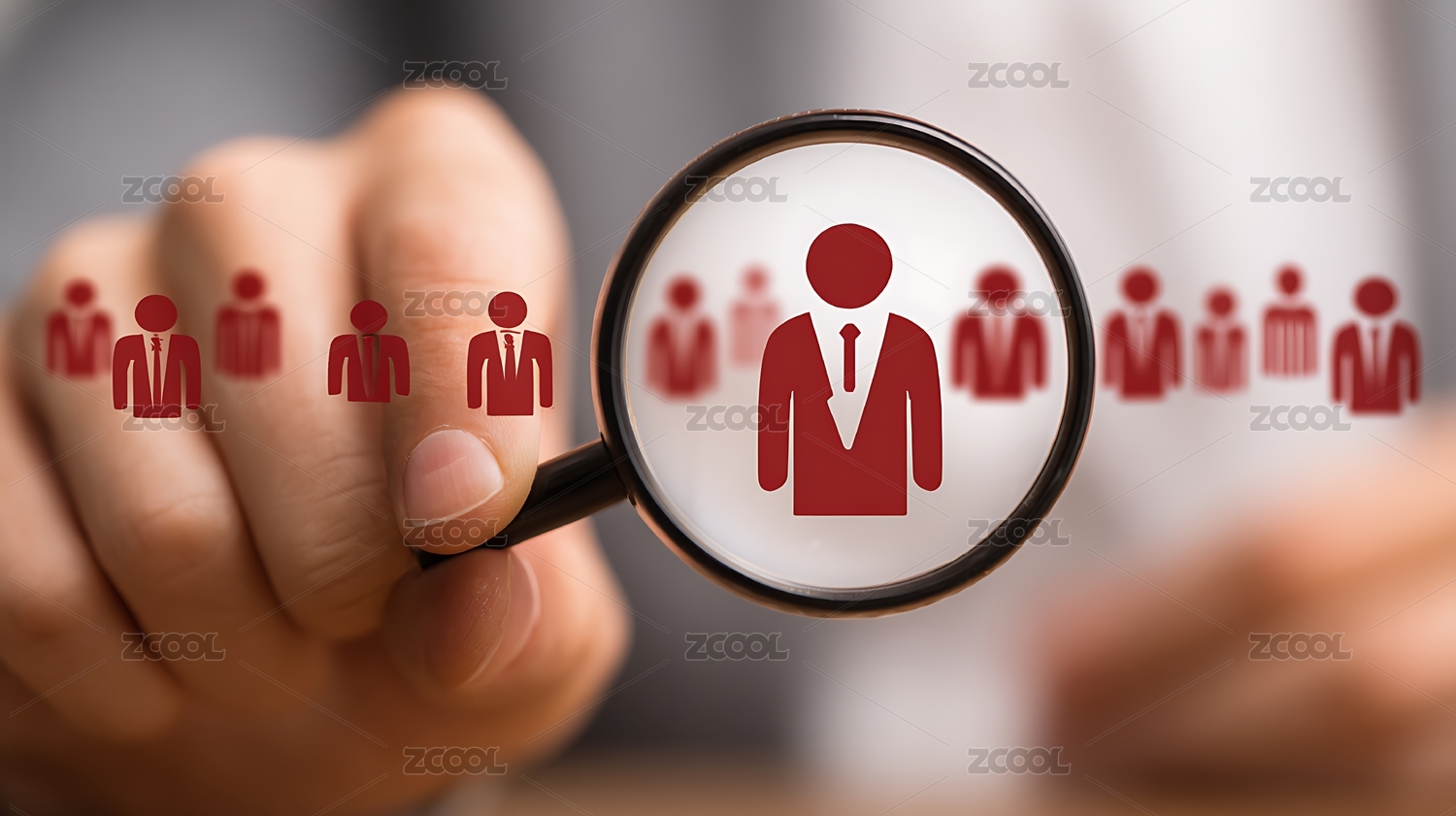 人物,放大镜,聚焦,招聘,筛选,寻找,人才,群体,目标,识别