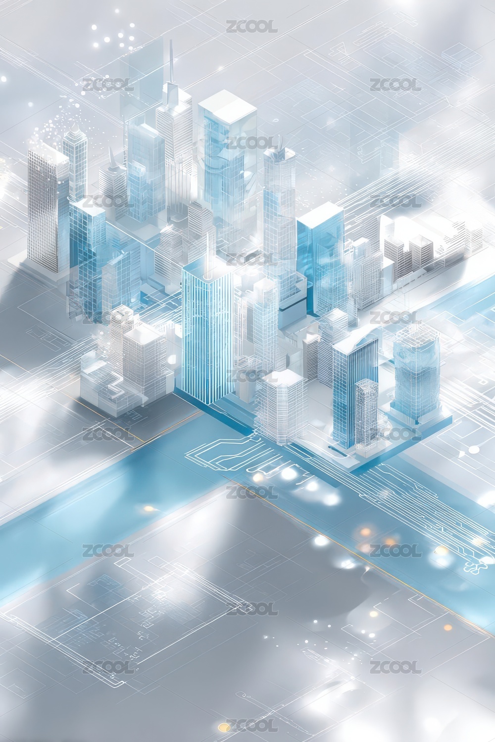 城市风光与科技线条