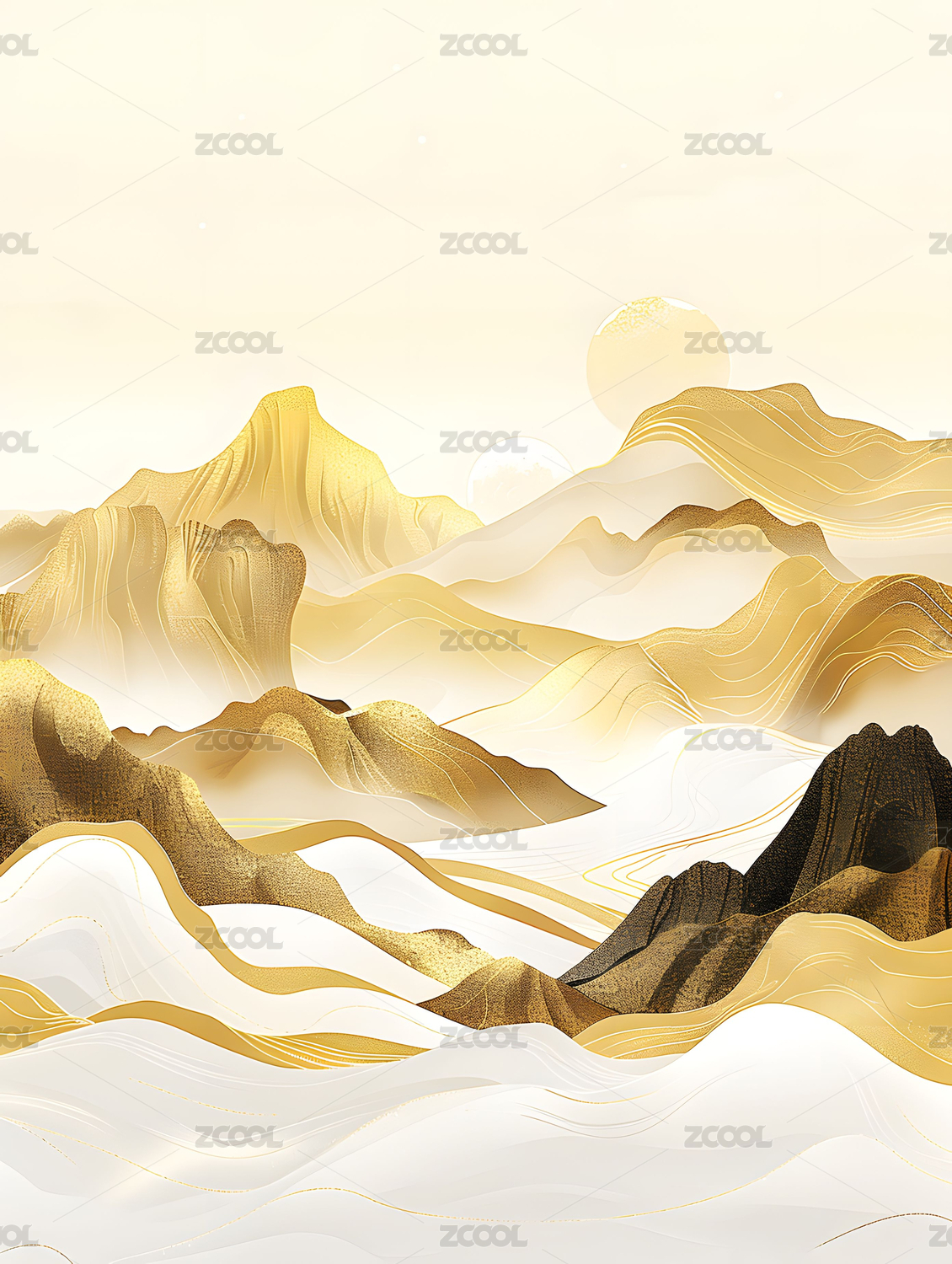 金色,山峦,云雾,抽象,风景,线条,朦胧,山脉,装饰,大气