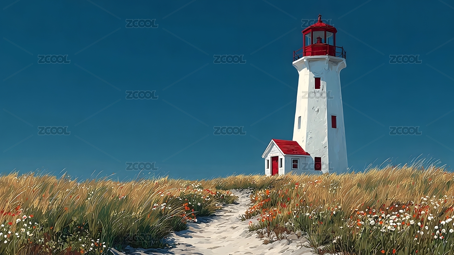 风景,红色,灯塔,海边,蓝天,建筑,景色,白色,海滩,孤独