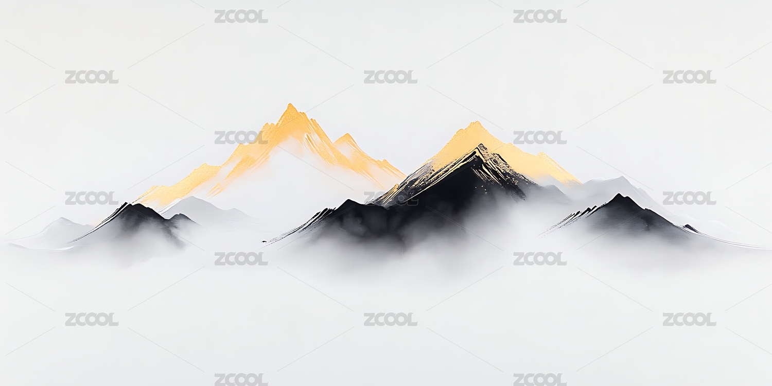 金色,意境,朦胧,山峰,云雾,水墨,留白,唯美,山水画