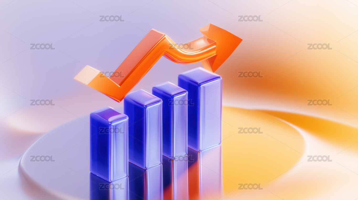 蓝金色渐变玻璃质感金融柱状图增长箭头背景