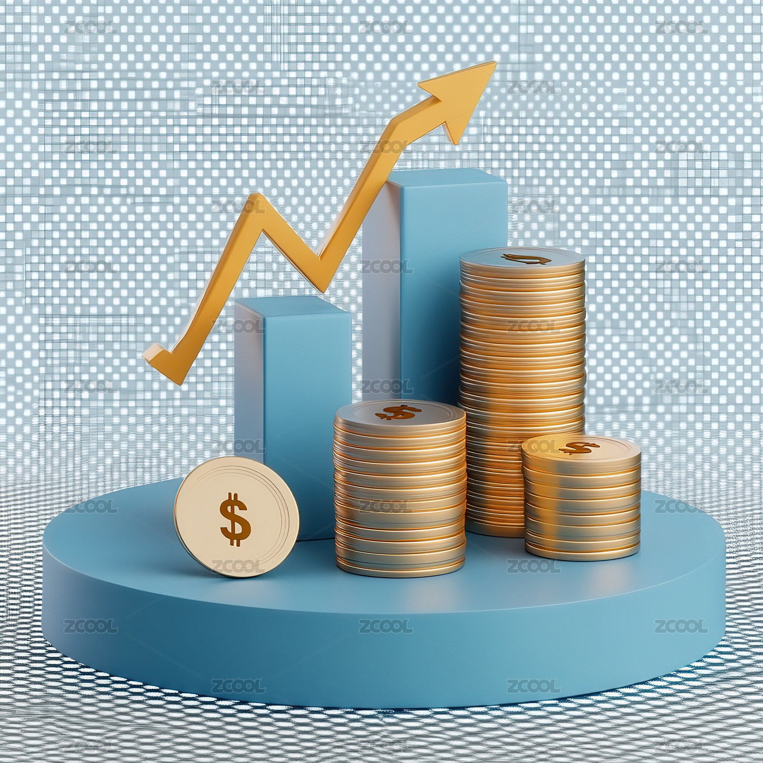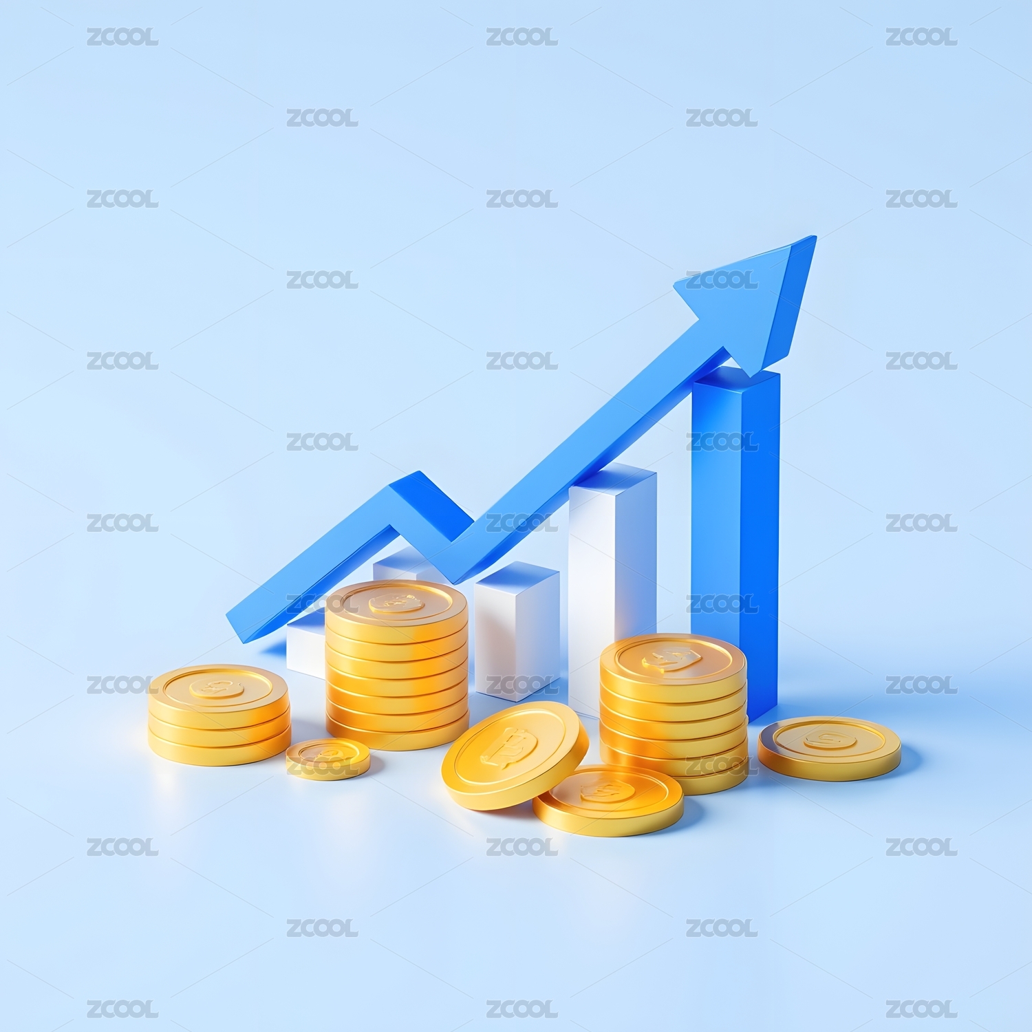 蓝色箭头与硬币堆叠