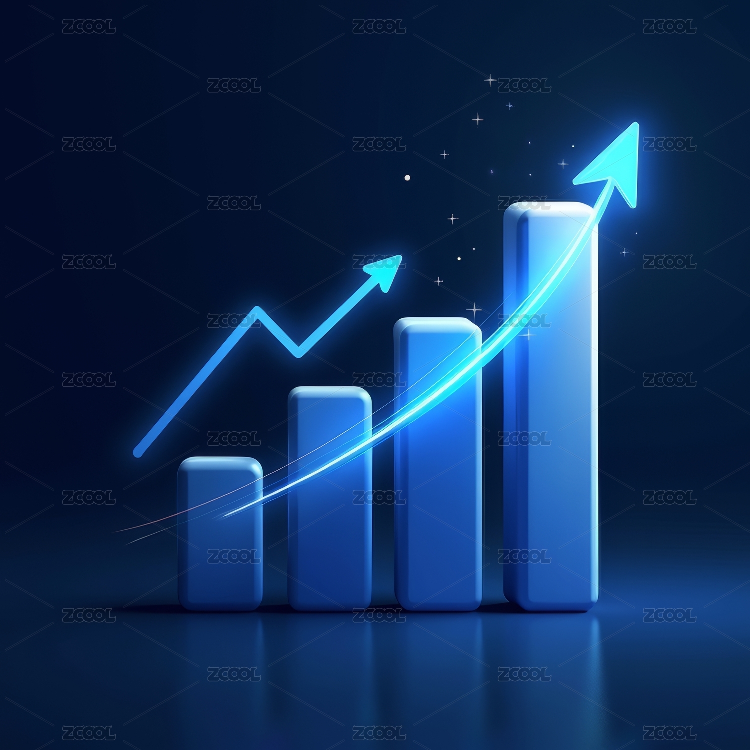 蓝金色渐变玻璃质感金融柱状图增长箭头背景